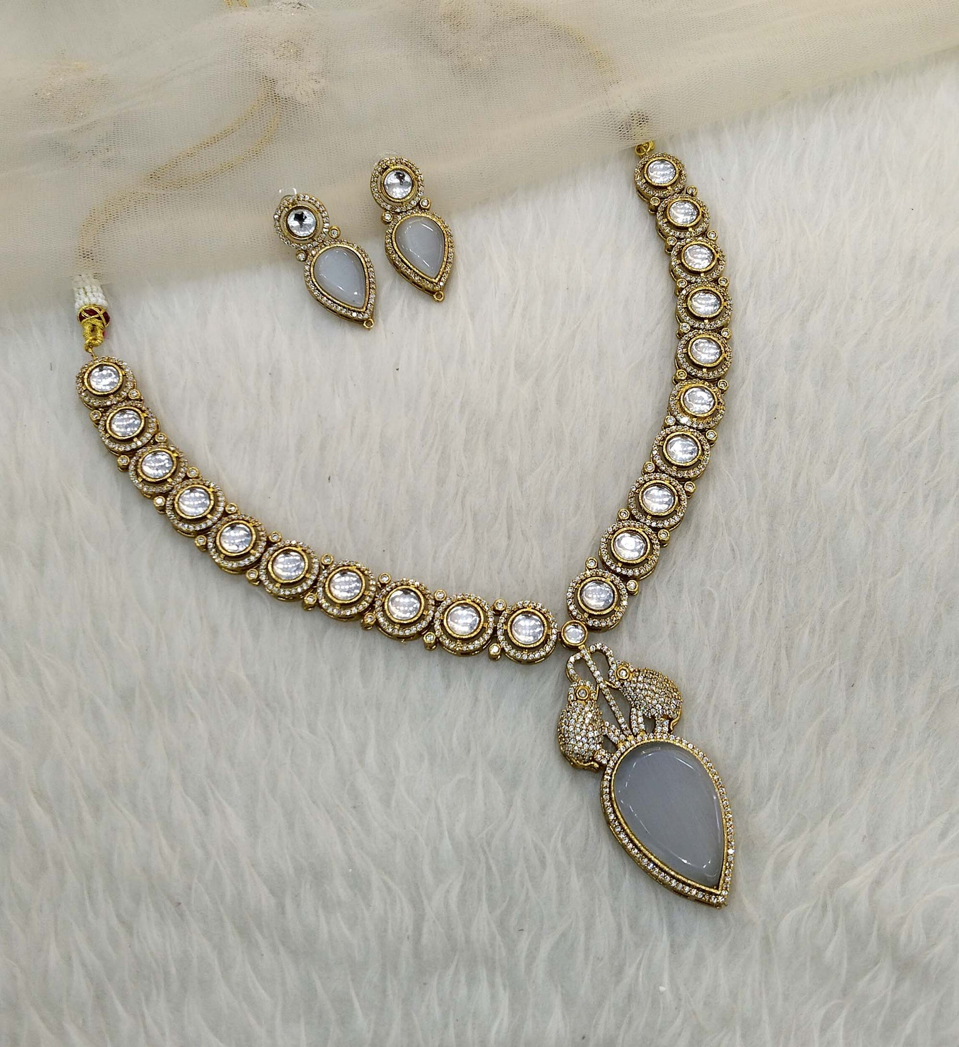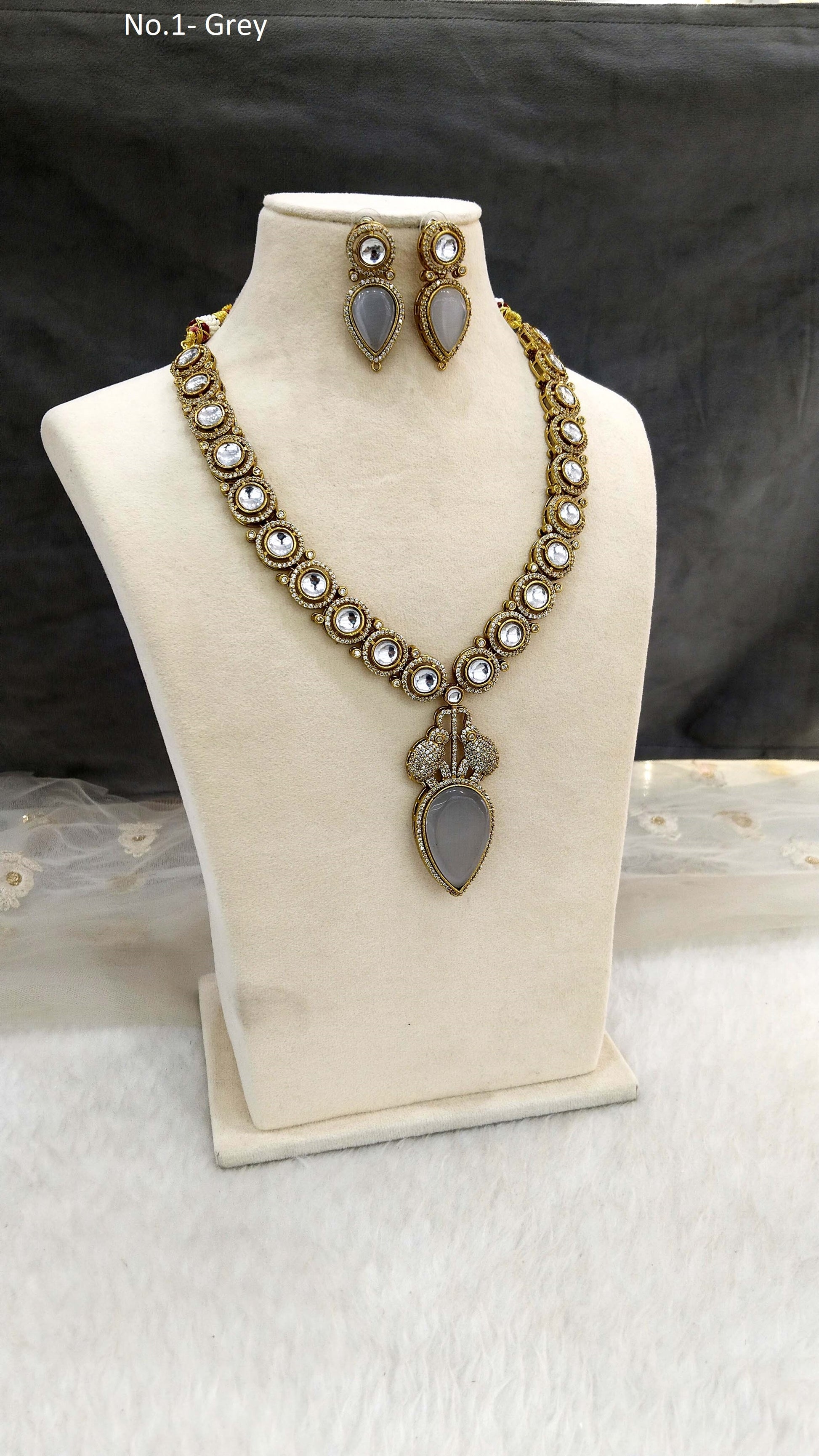 Moissanite kundan long grey necklace set Indian Jewellery Sunita Wedding Set