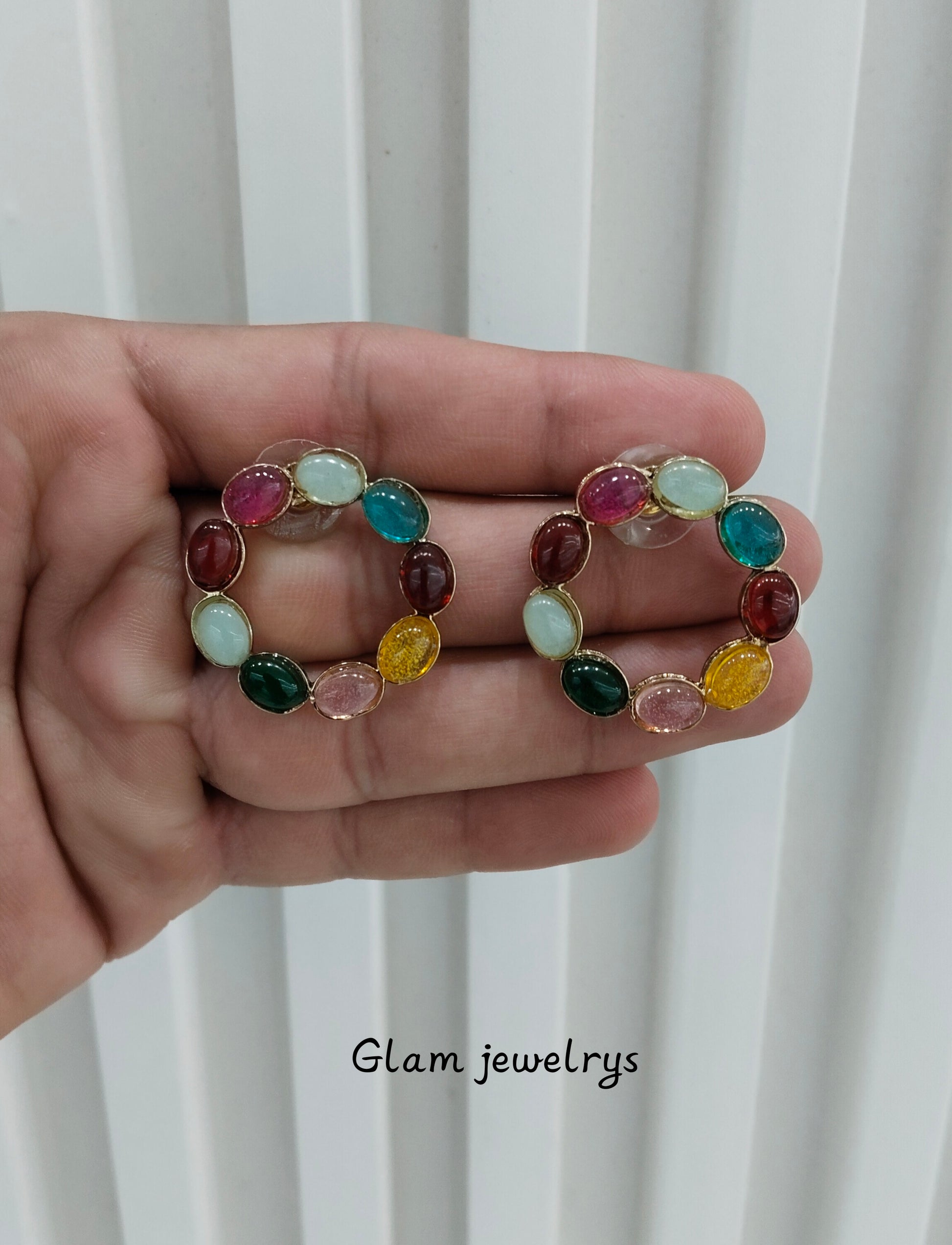 Multi Color Antique Gold Stud Bollywood Indian Shota Earrings