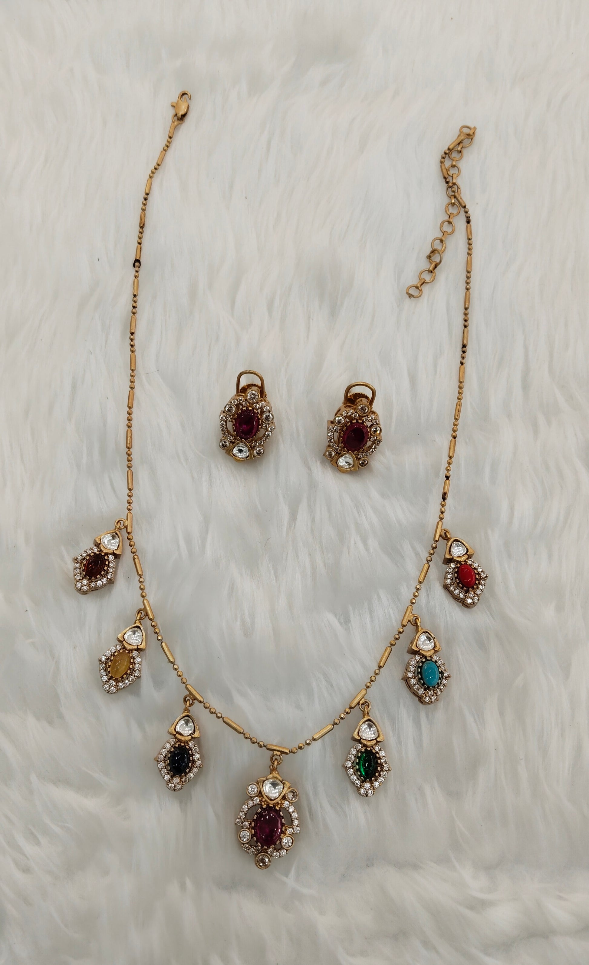 Multi Color Gold Moissanite Kundan Necklace Indian Jewellery Delux Chain Set