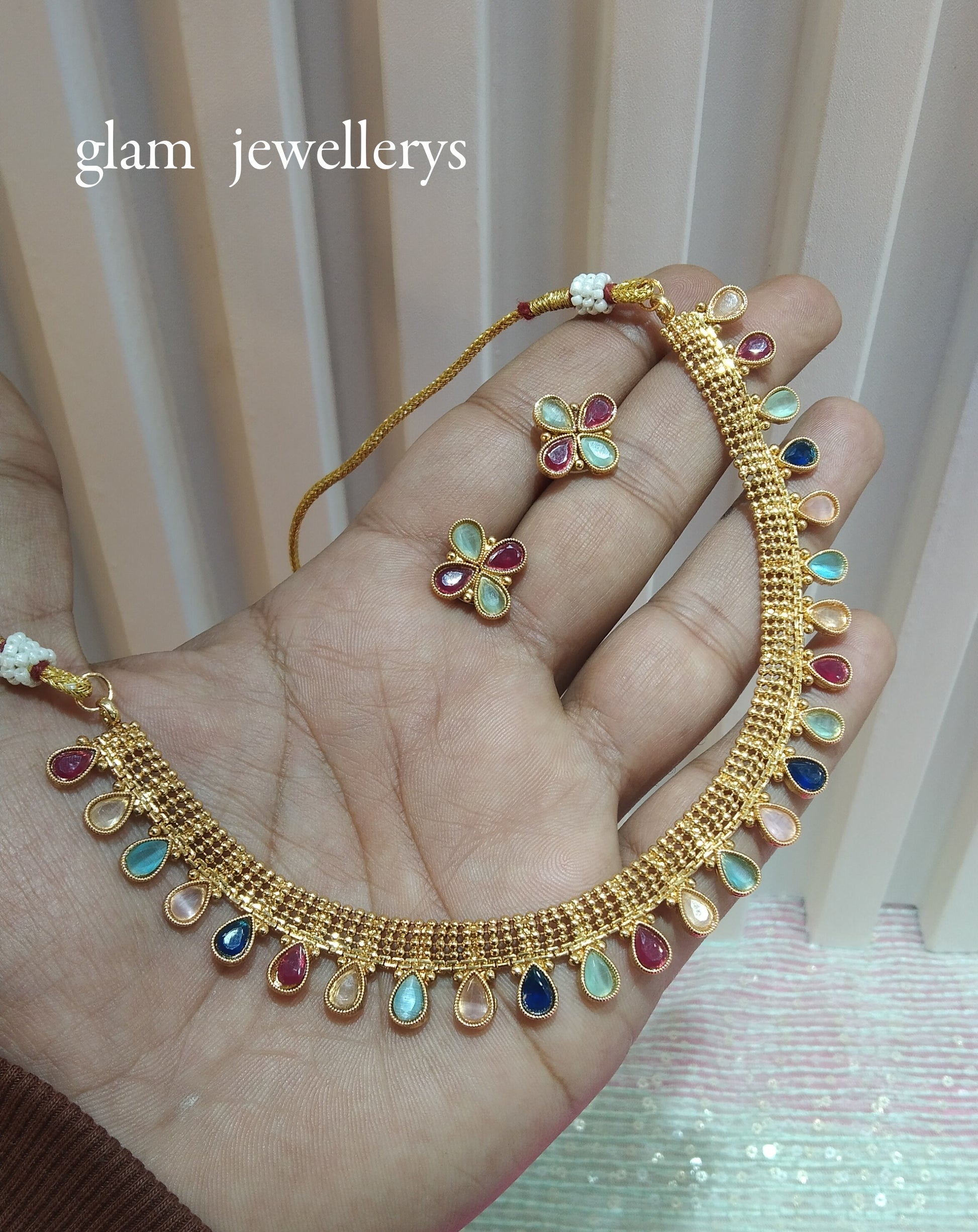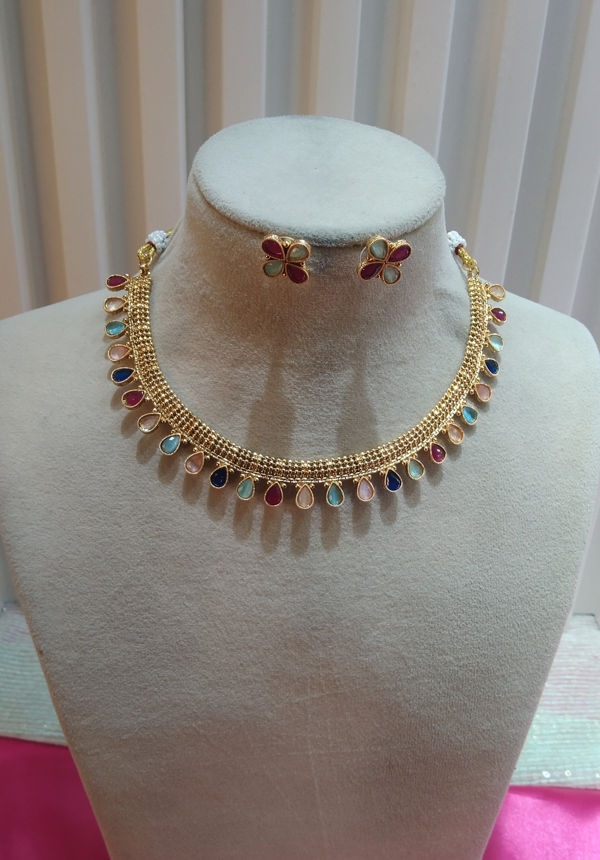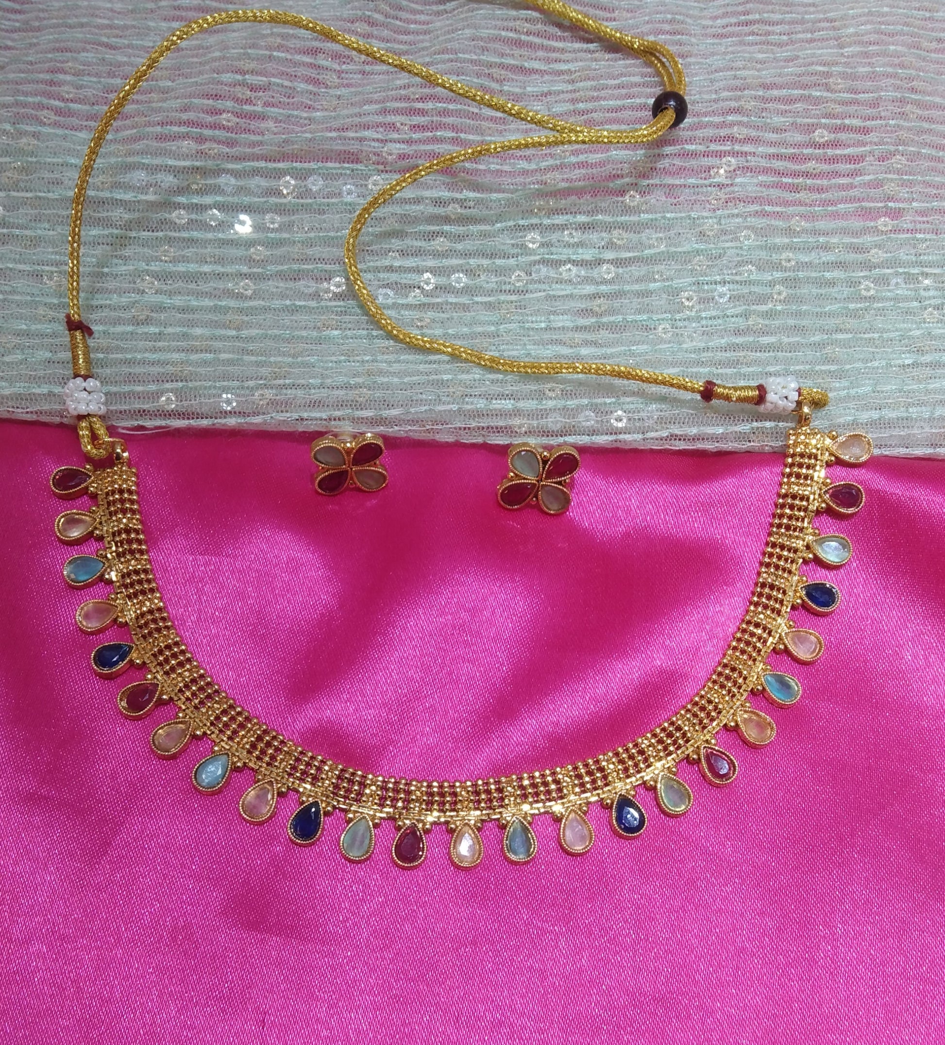 Multi Color Gold Polki Necklace Indian Jewellery Delta Set