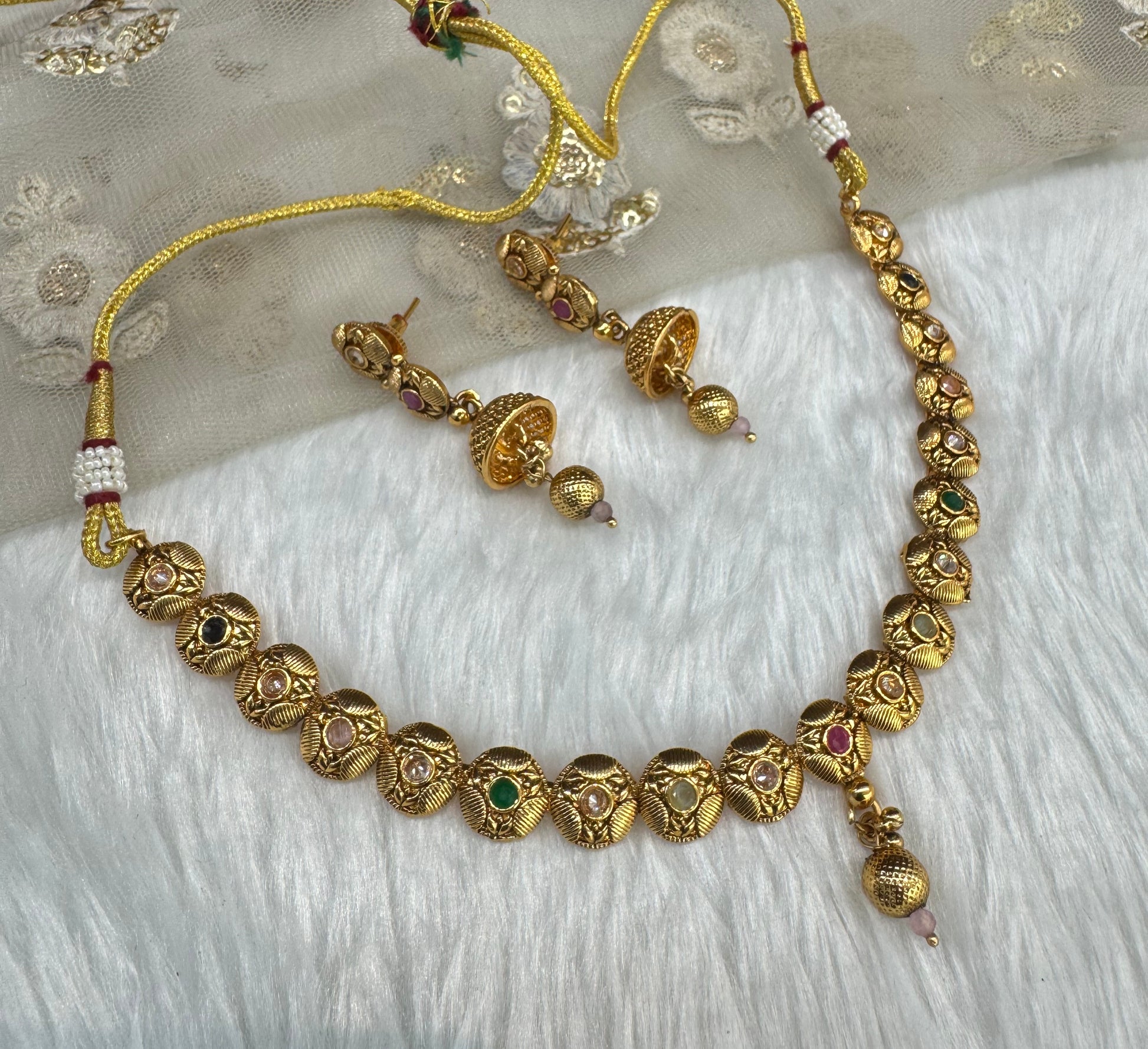 Multi color Gold Polki Necklace Indian Jewellery Pawan Set