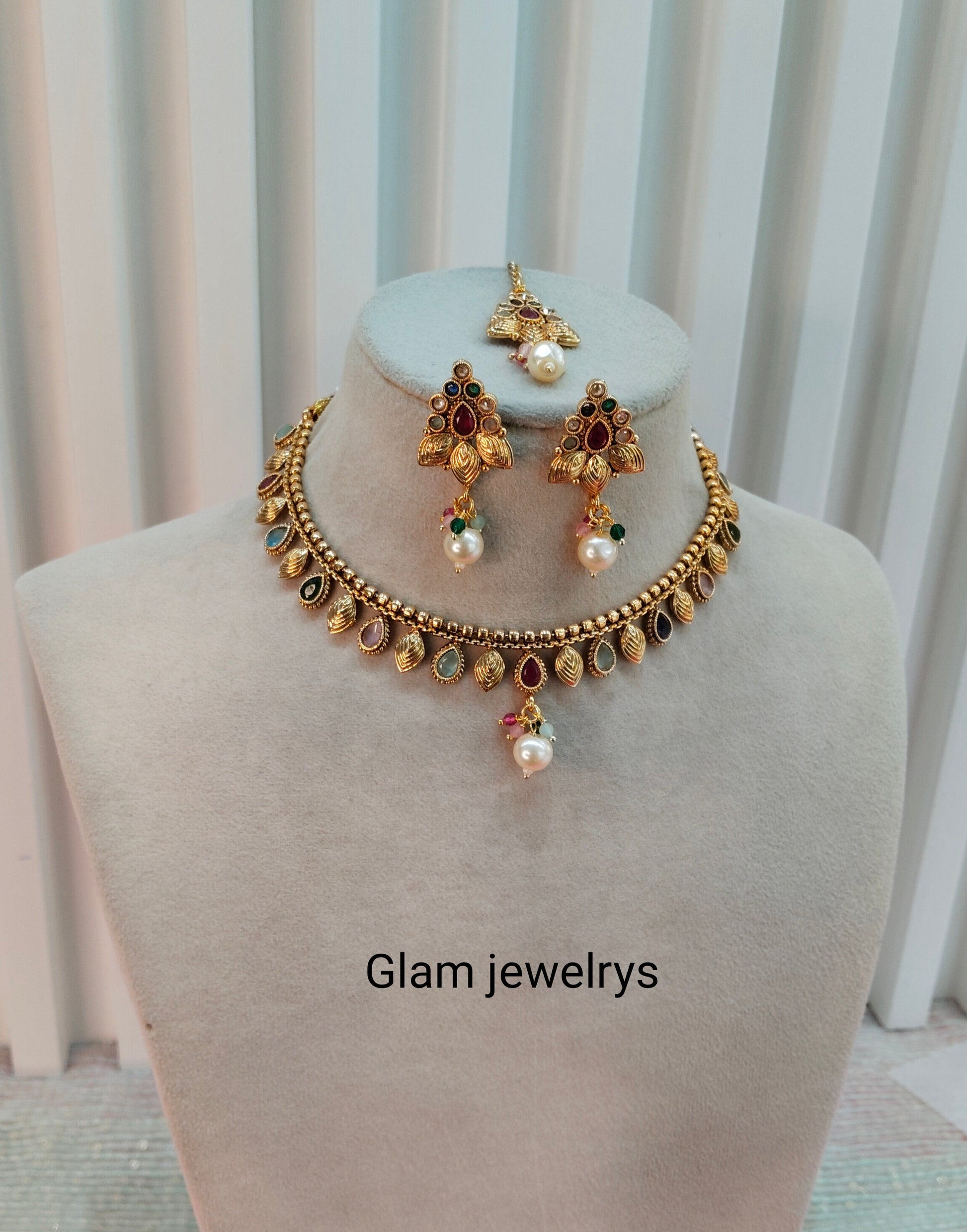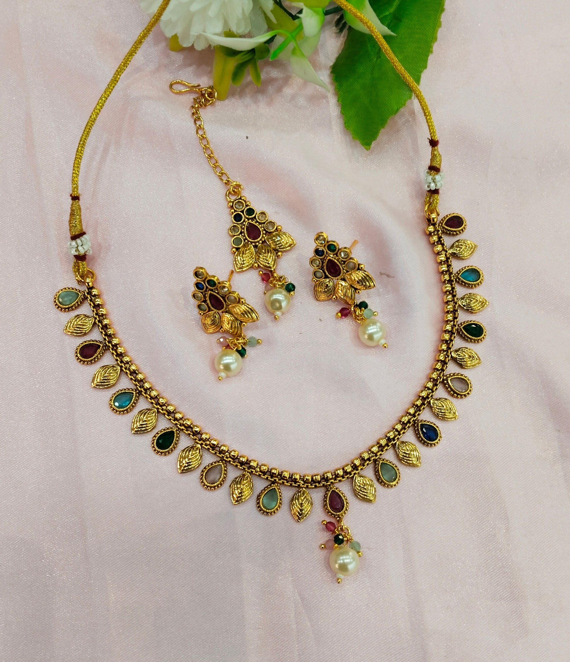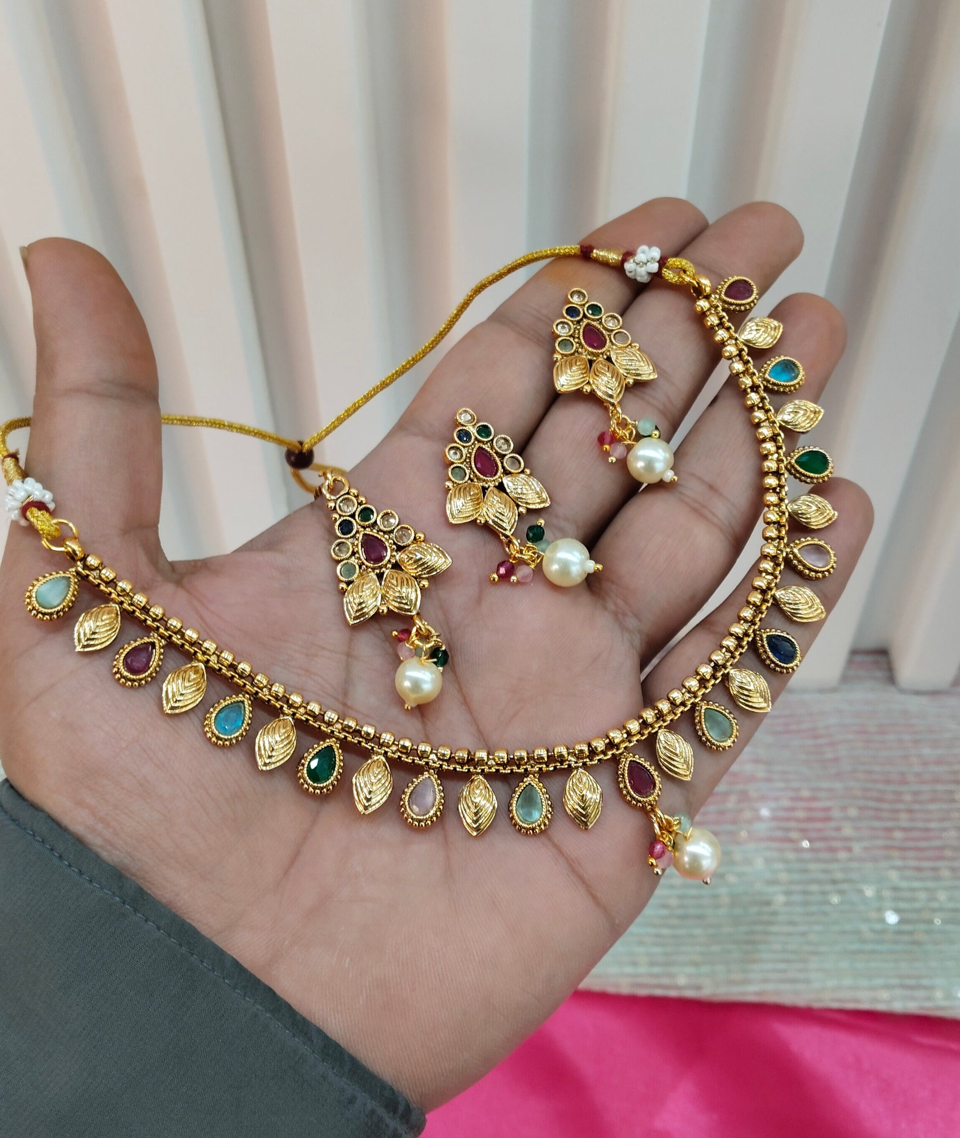 Multi color Gold Polki Necklace Indian Jewellery Studio Set