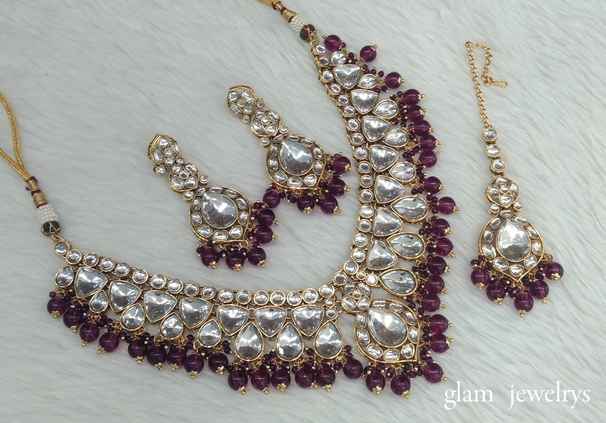 Purple Kundan necklace Set/ kundan Indian jewellery Mekha sets