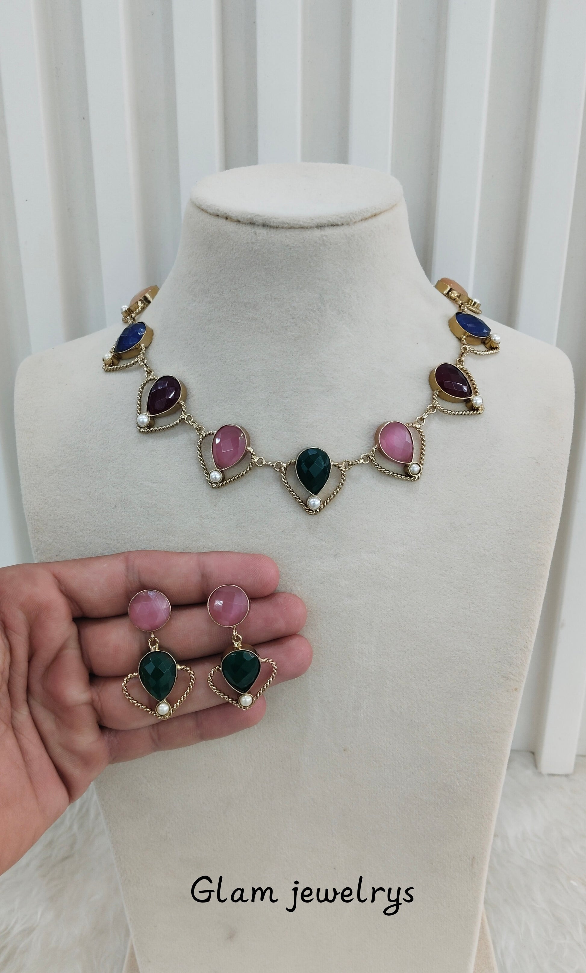 Multi Color Victorian Necklace Indian Jewellery Escourt Set