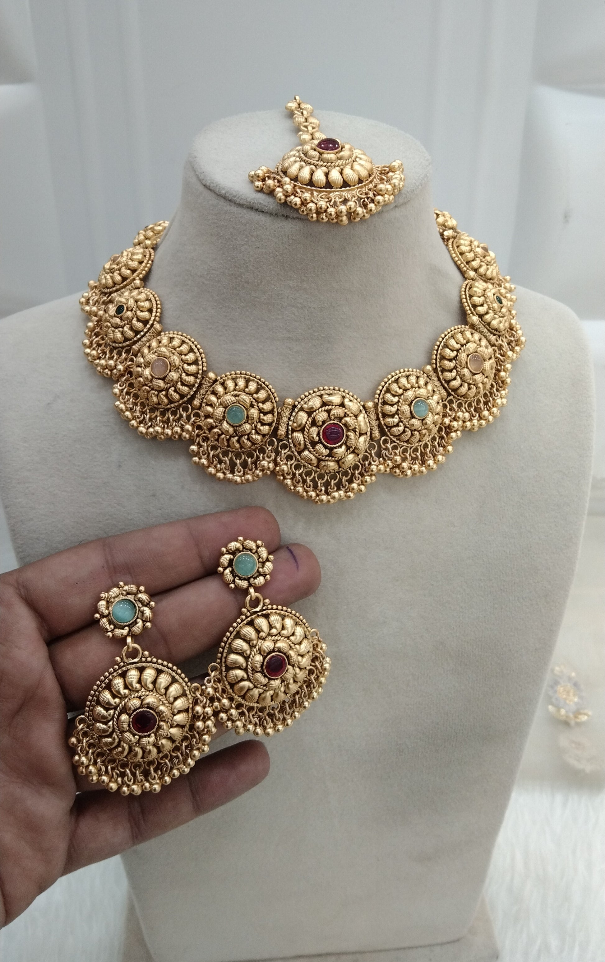 *Light weight gold necklace Set with earrings as shown in the pic.
