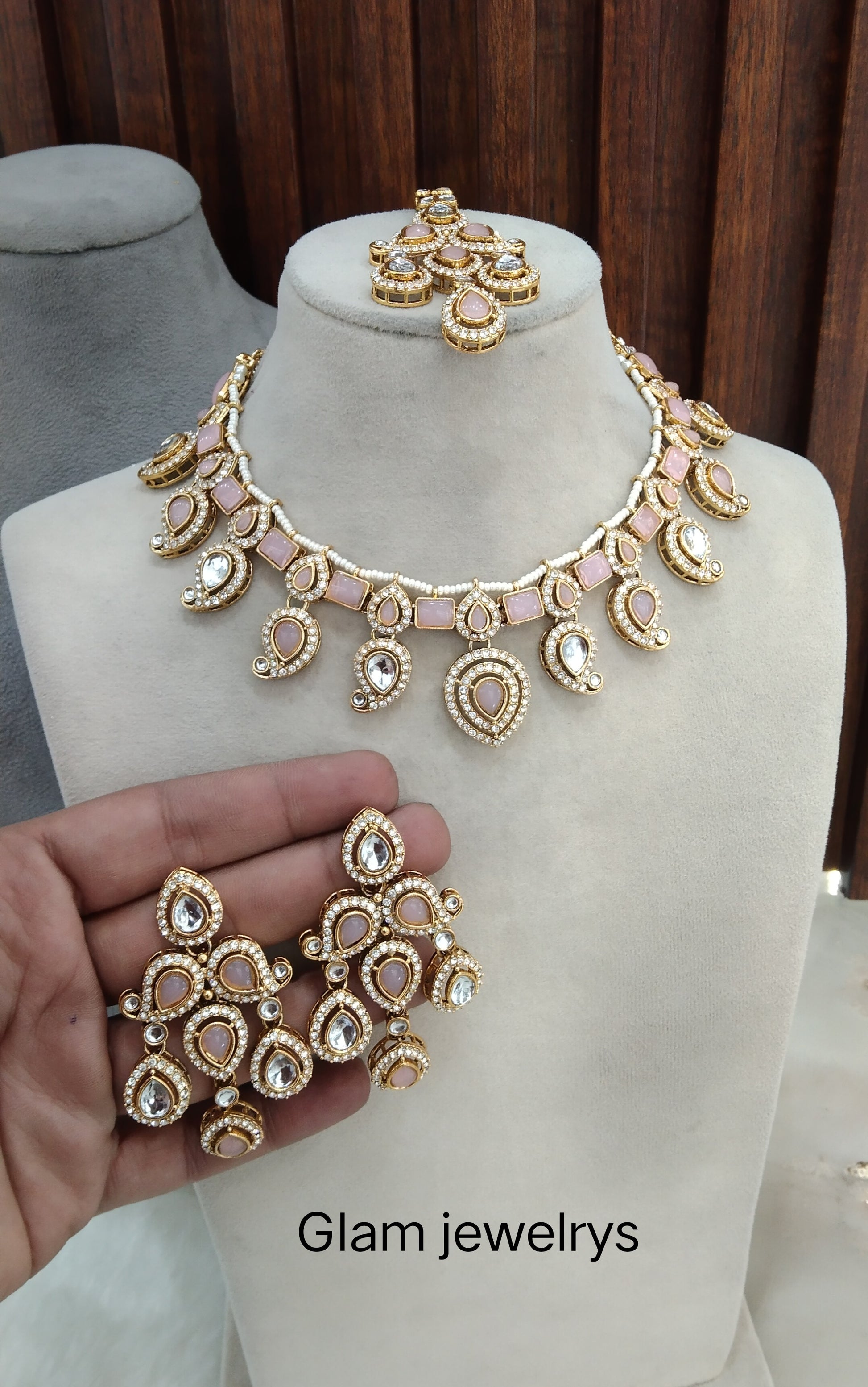 Indian Jewellery Pink Kundan Choker Set/ kundan choker hello Set