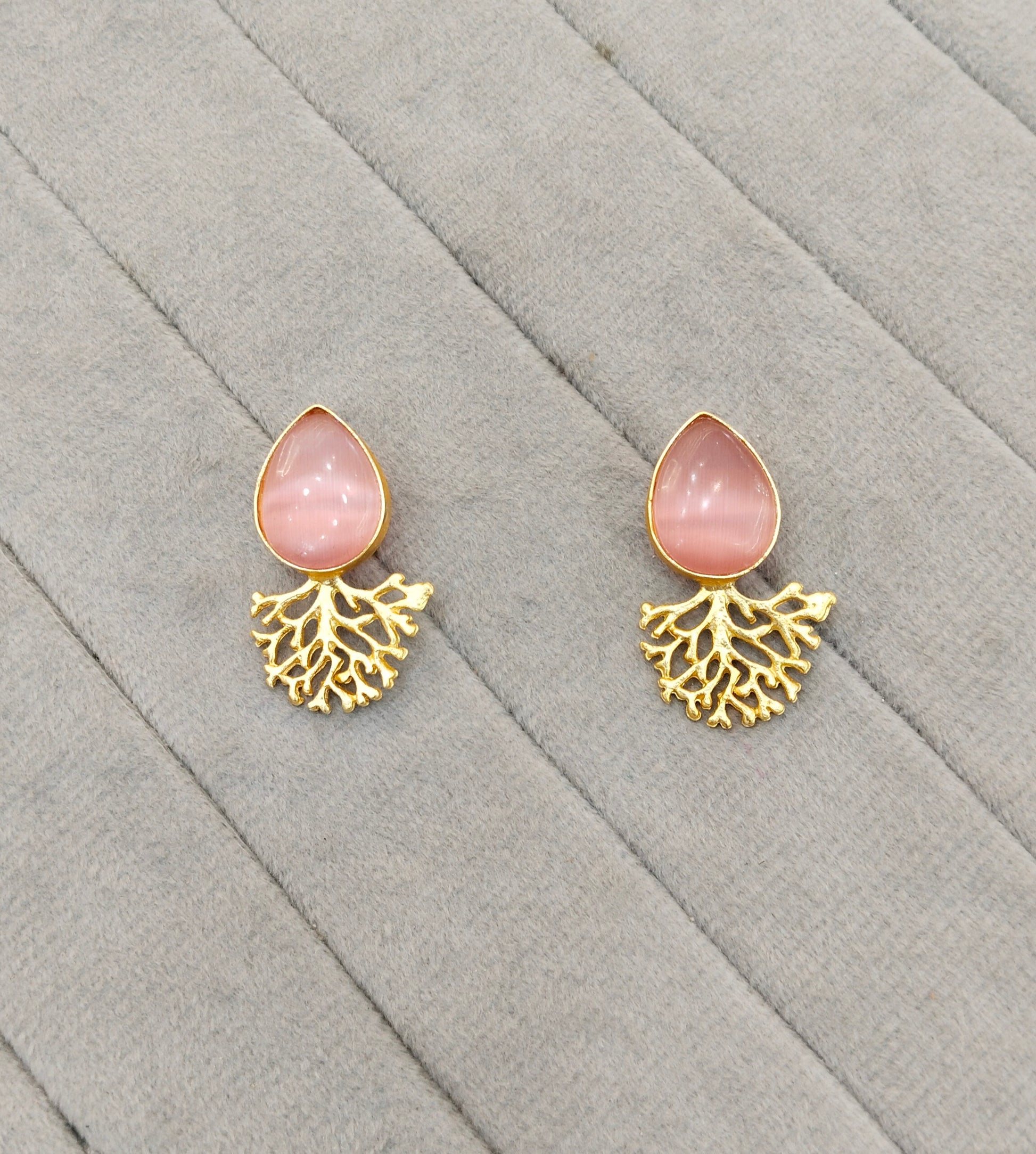 Pink Gold Mother Of Pearl Bollywood Indian Bhullar Earrings