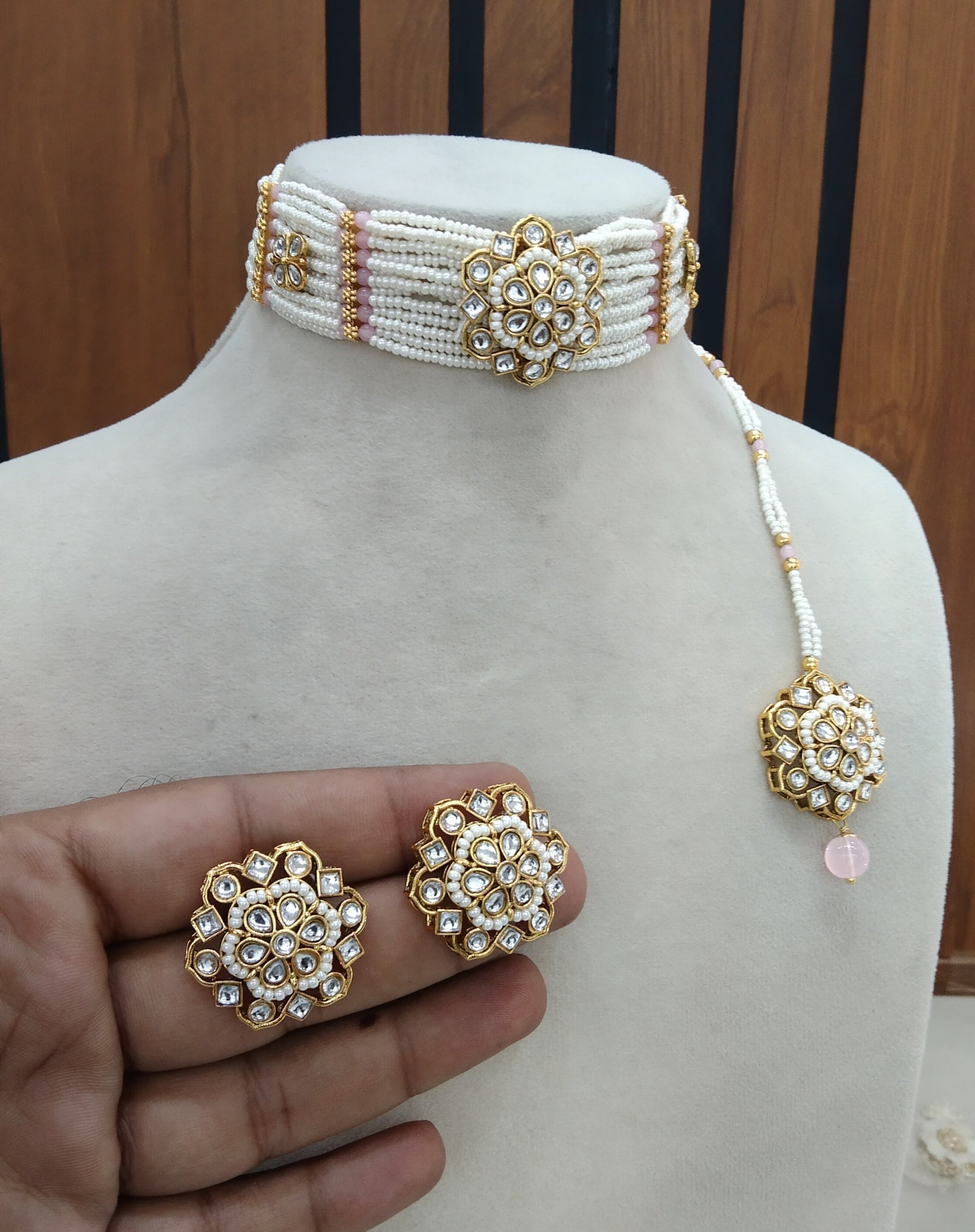Indian Jewellery Pink Kundan Choker Set/ kundan choker hello Set