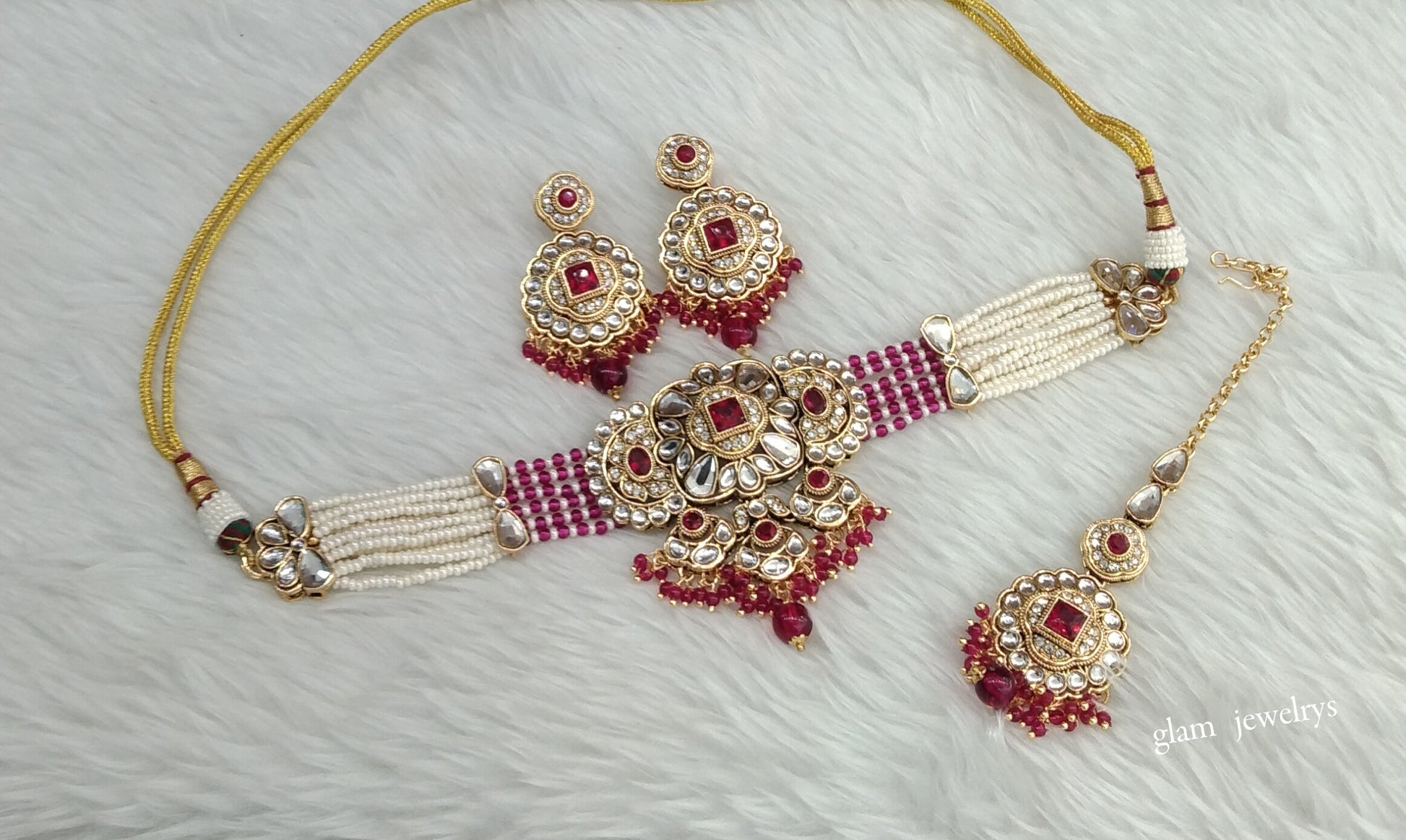 Magenta kundan Choker Indian jewellery Jasveer sets