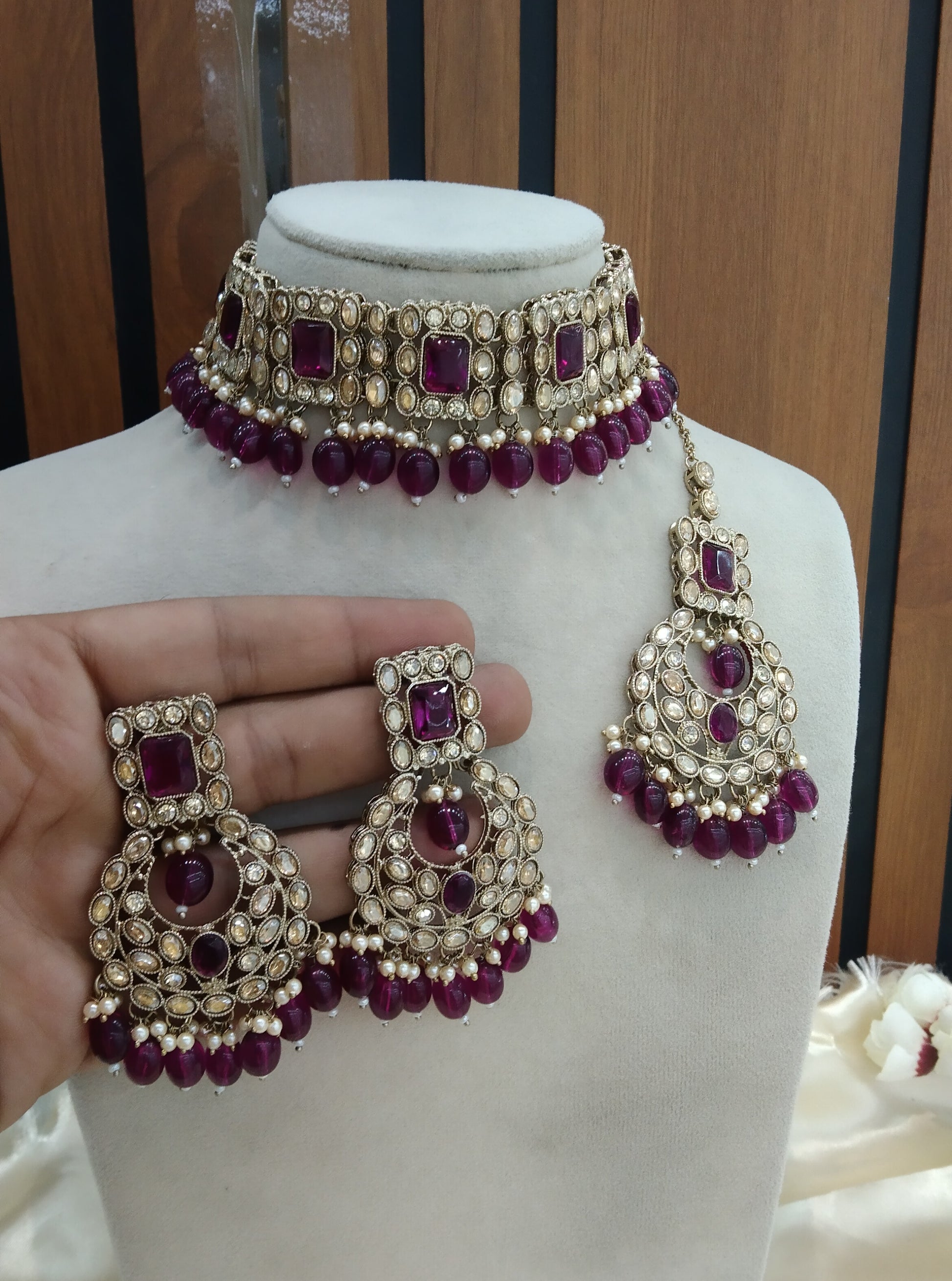 *Light weight gold Choker Set with earrings Tikka as shown in the pic.