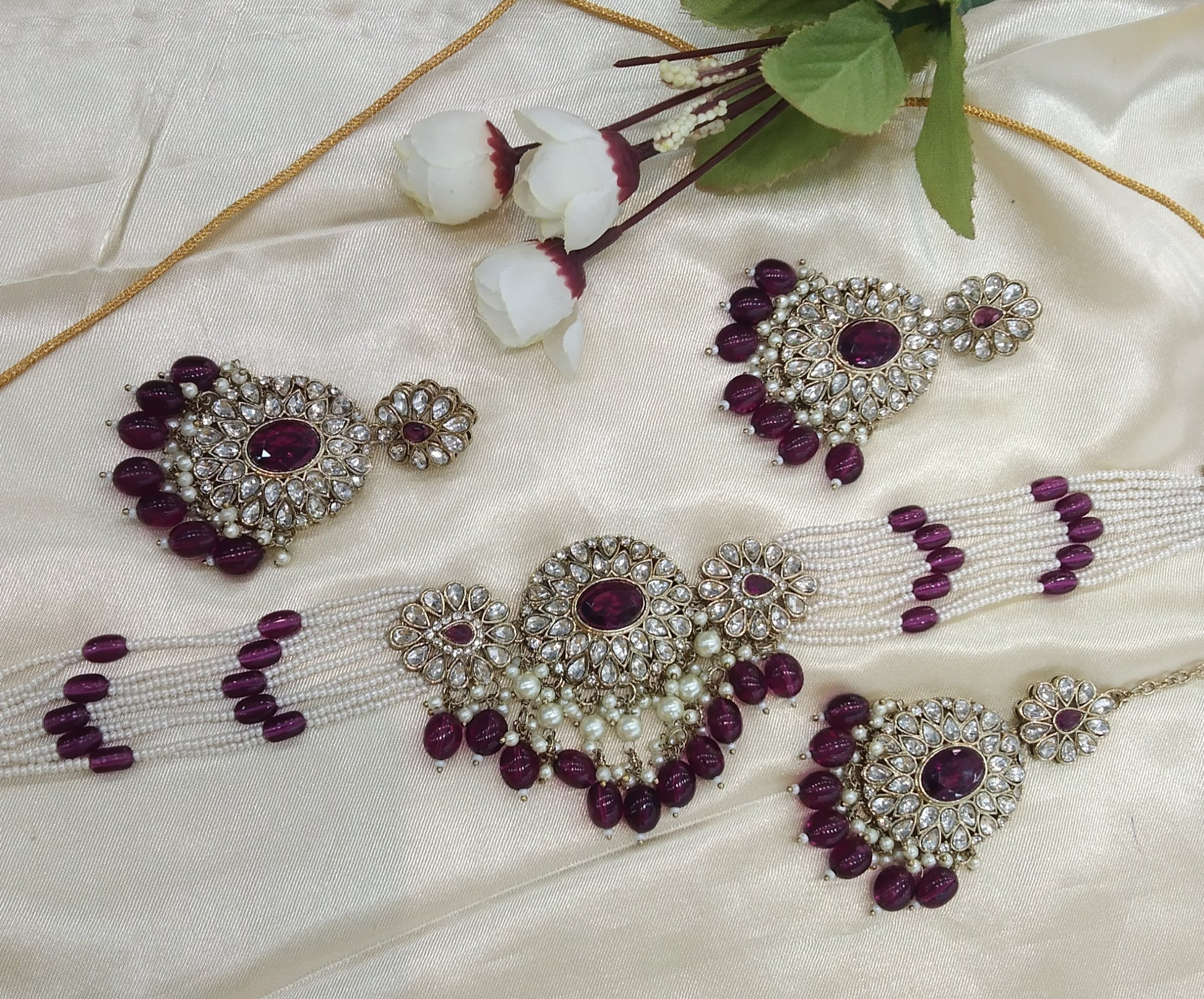 *Light weight gold Choker Set with earrings Tikka as shown in the pic.