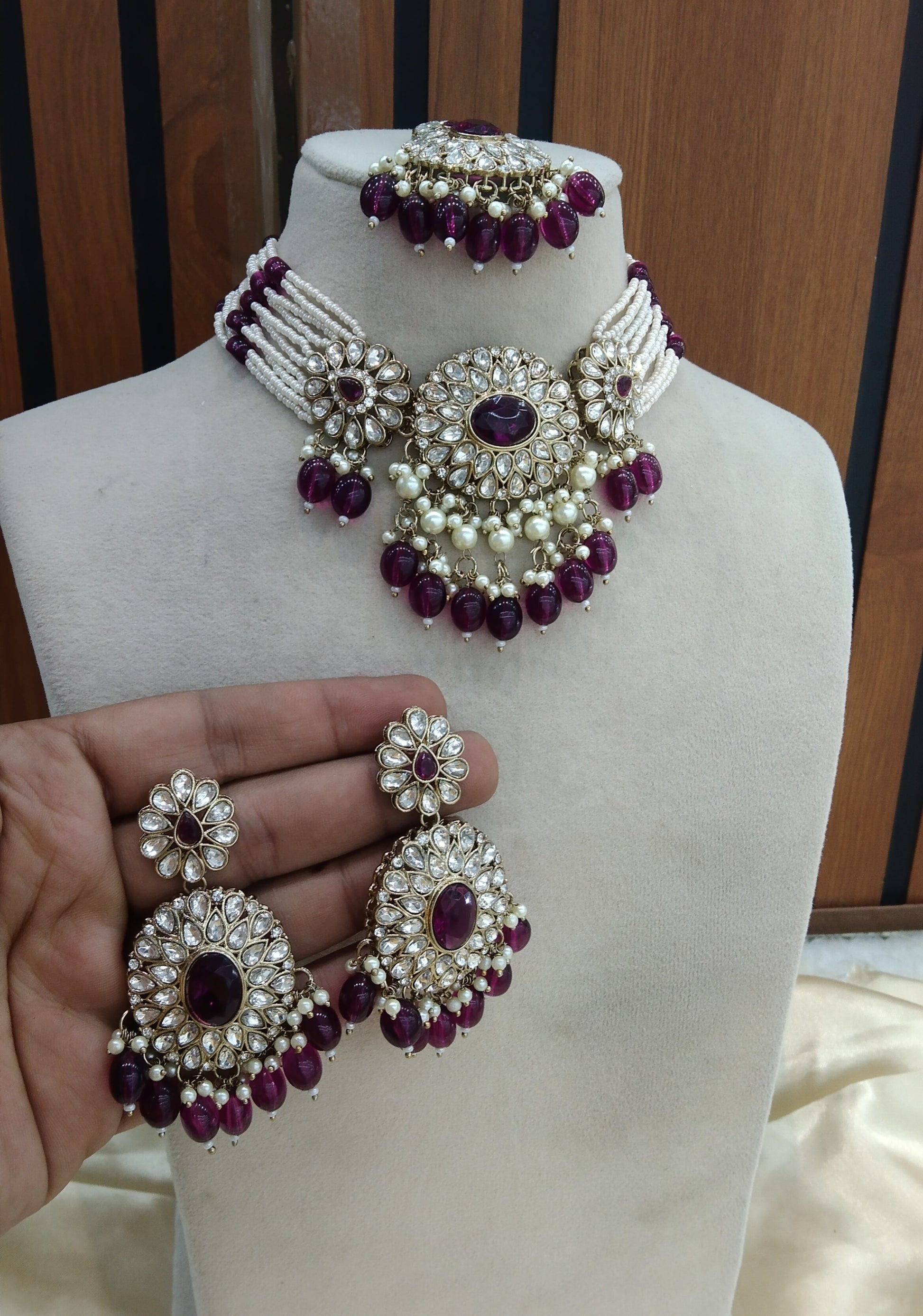 Indian Jewellery Pink Kundan Choker Set/ kundan choker hello Set