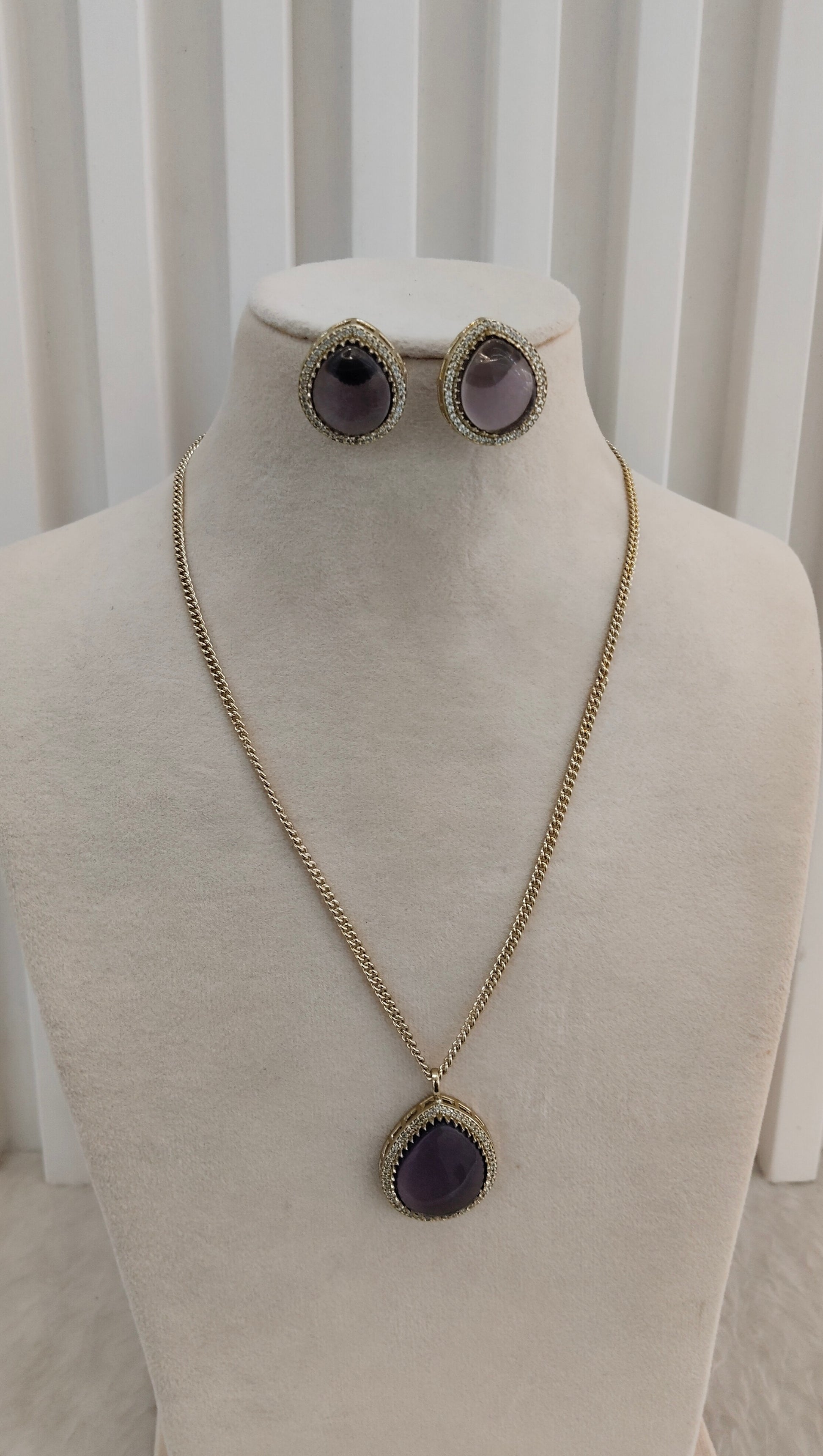 Purple Gold Moissanite Kundan Necklace Indian Jewellery Avenger Chain Set