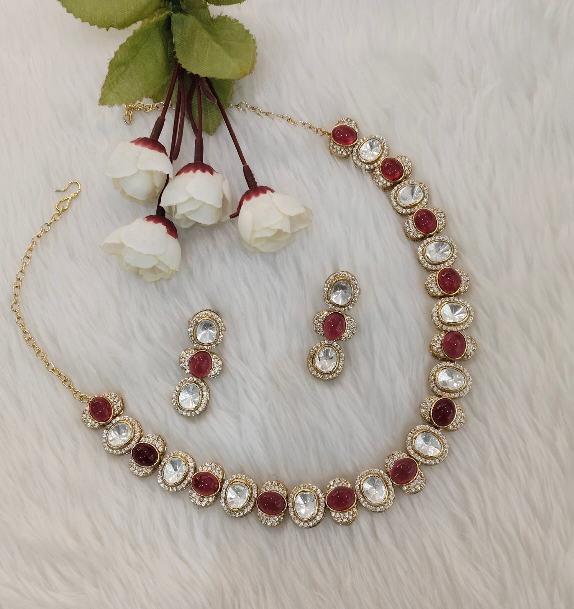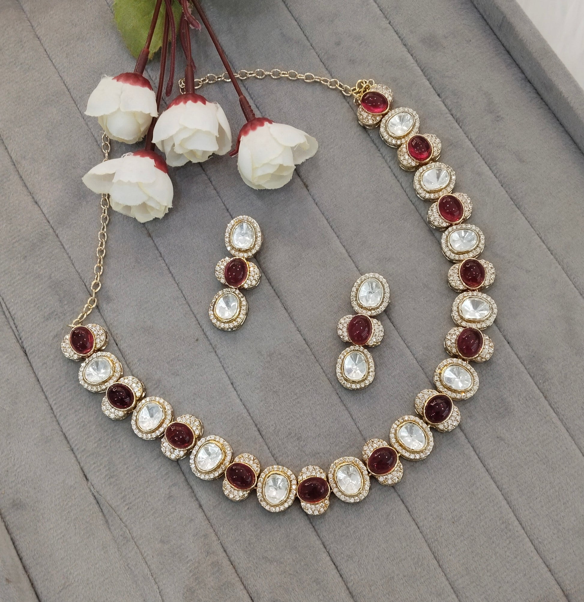 Ruby Gold Moissanite Kundan Necklace Indian Jewellery Sonalika Set