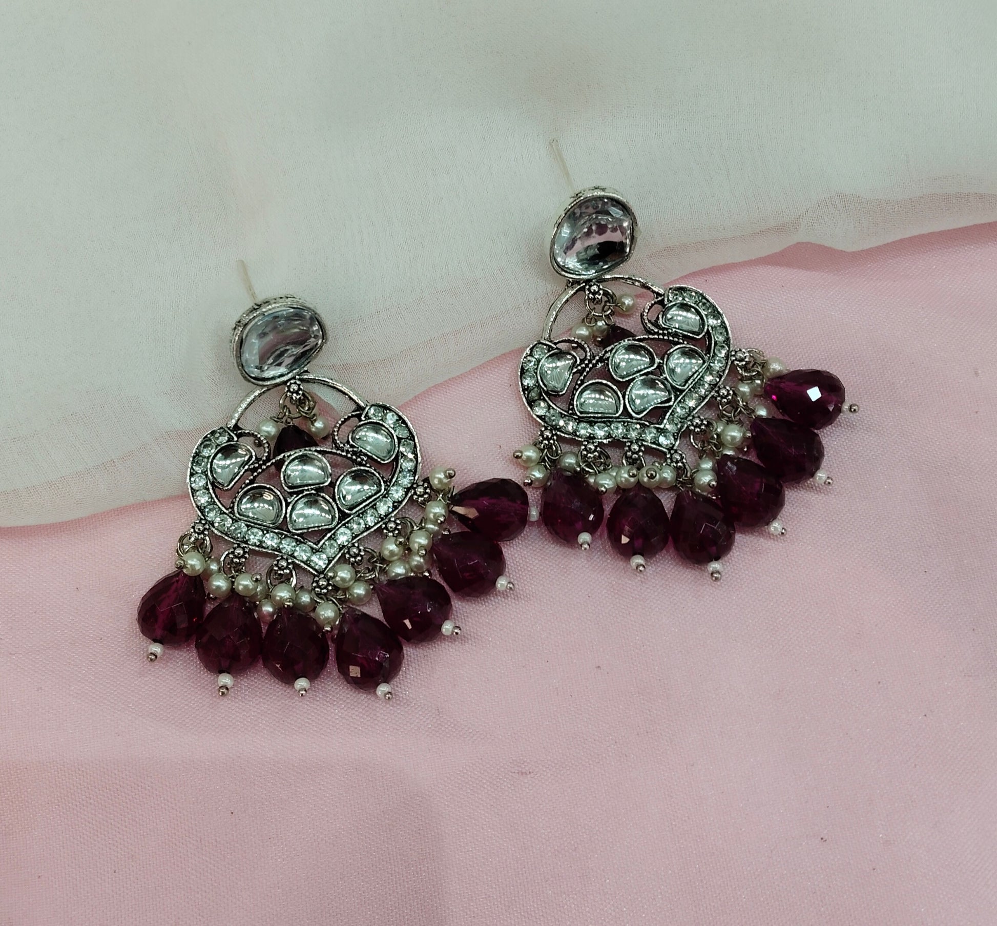 Purple Oxidized Metal Pushpa Indian Earrings Set