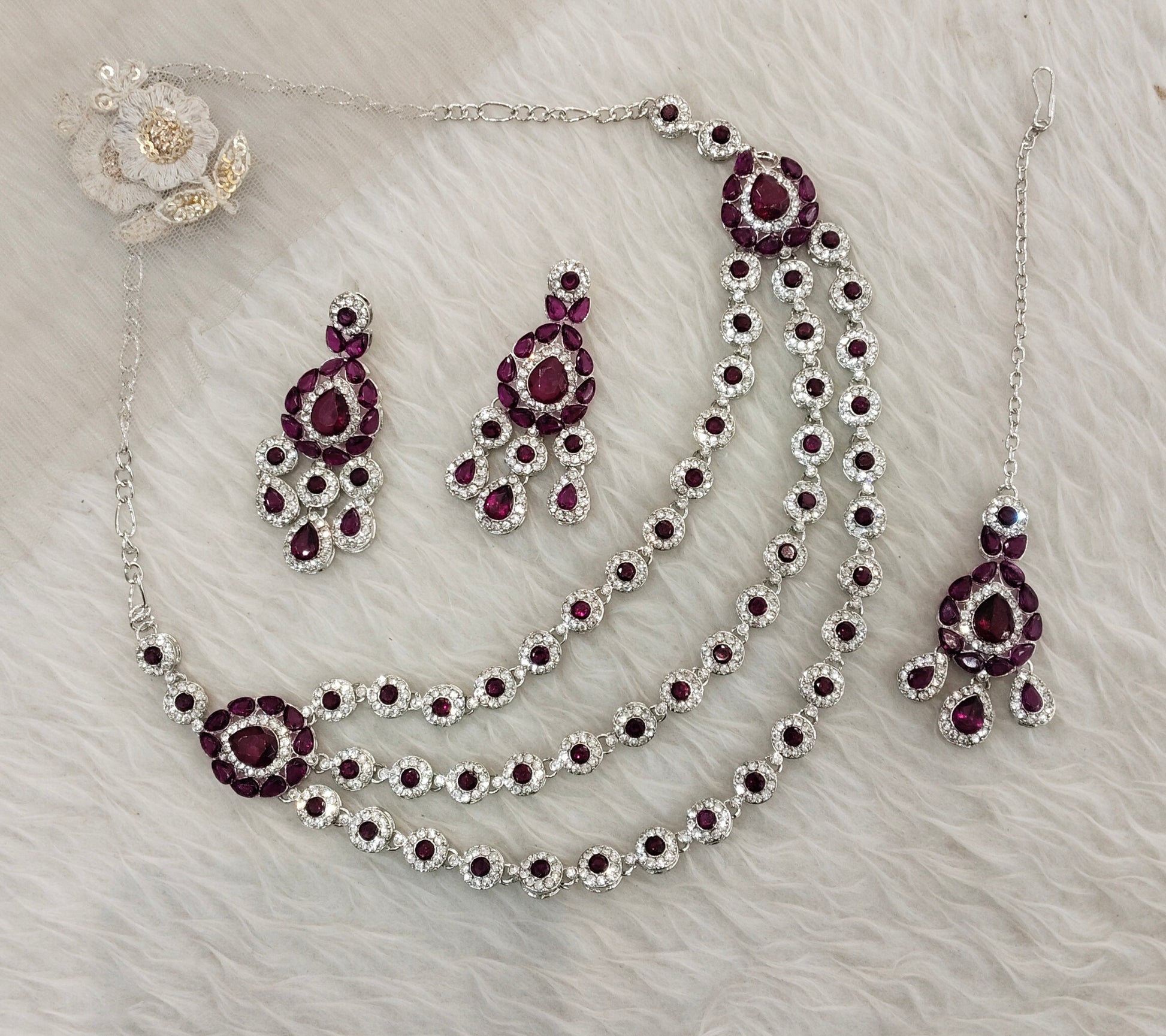 Purple Silver Zircon Necklace Indian Jewellery Varun Set