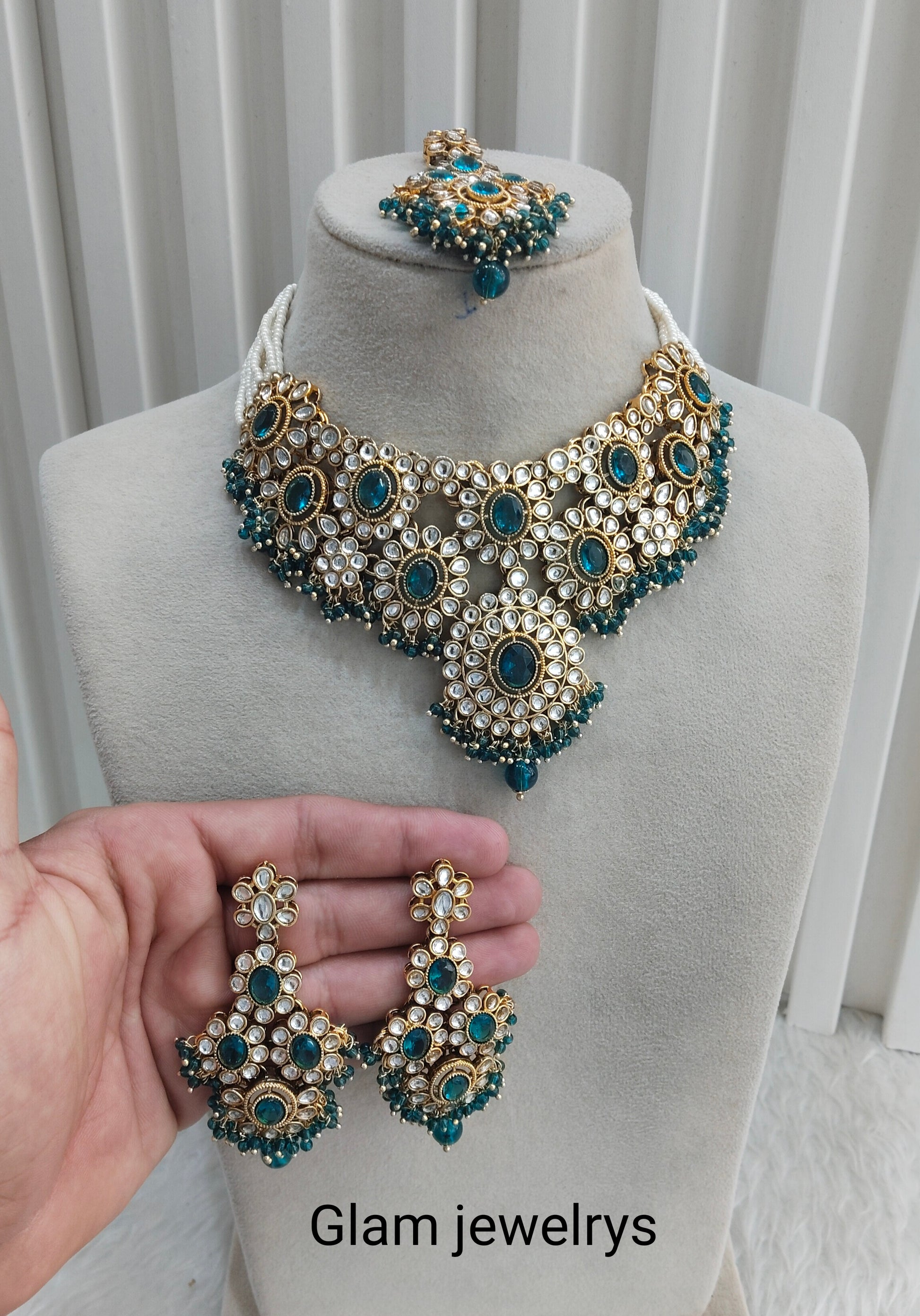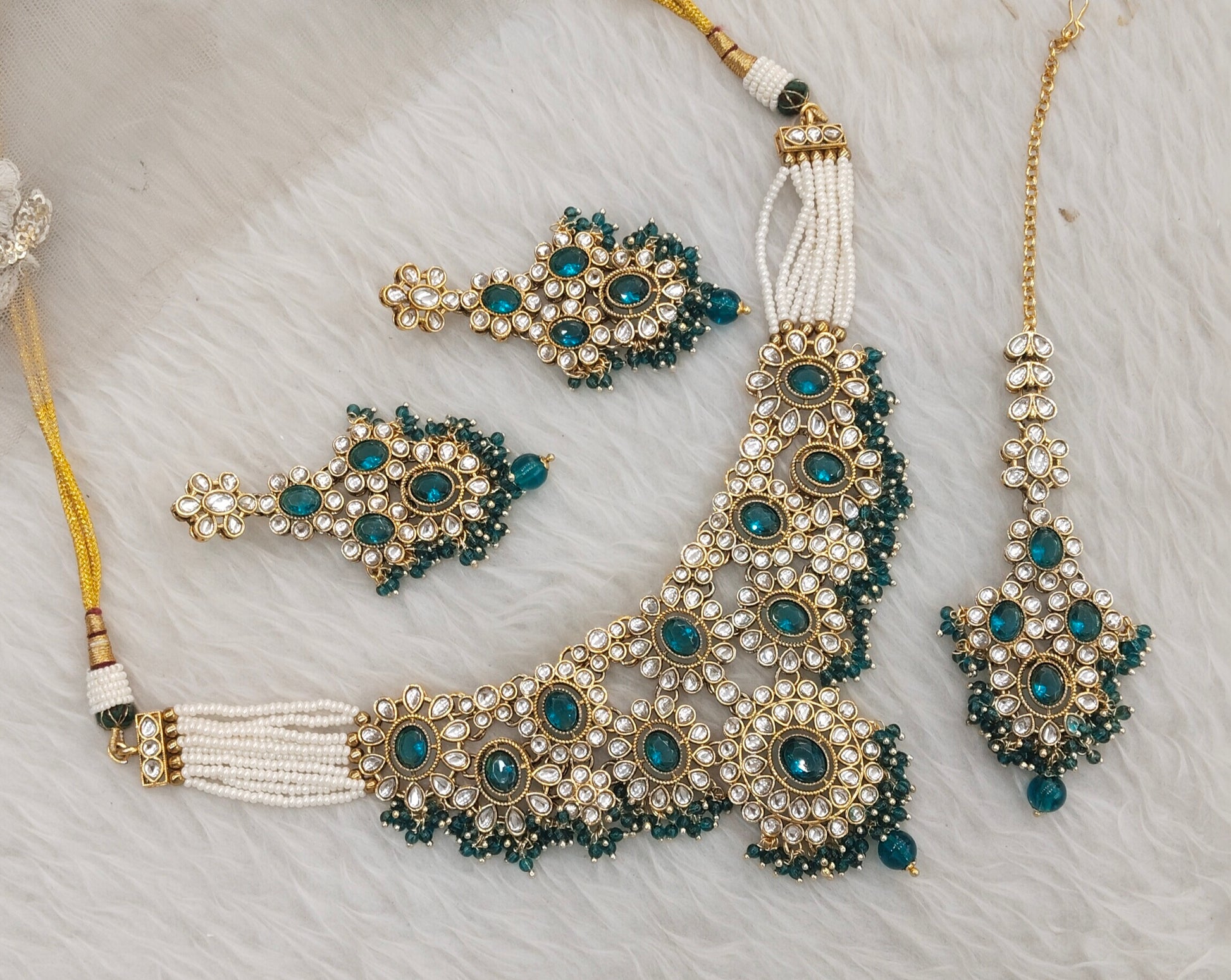 Rama Green Gold Kundan Necklace Indian Jewellery Ritika Set