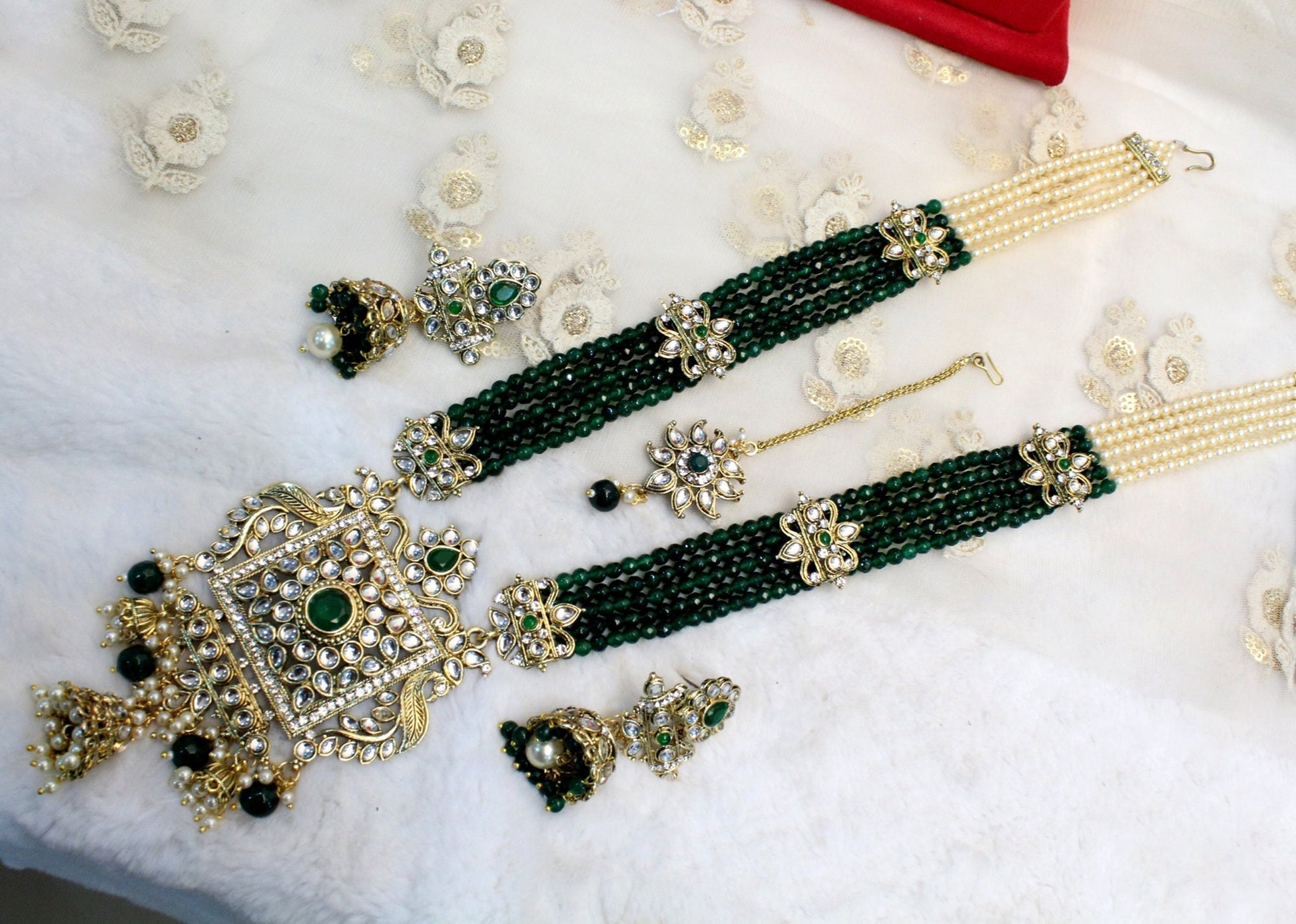 Pastel Green Bridal Necklace Jewellery Kadir Set