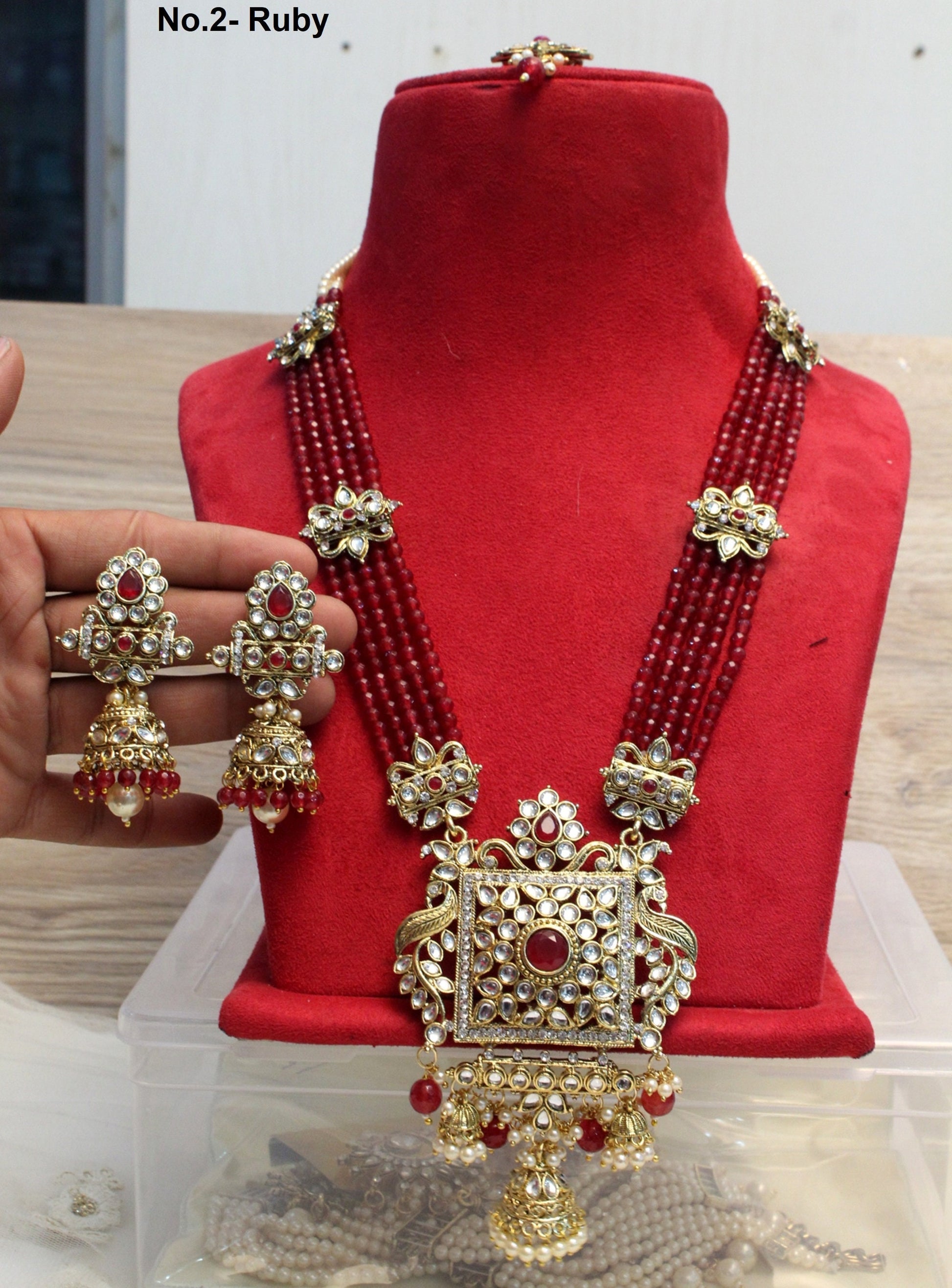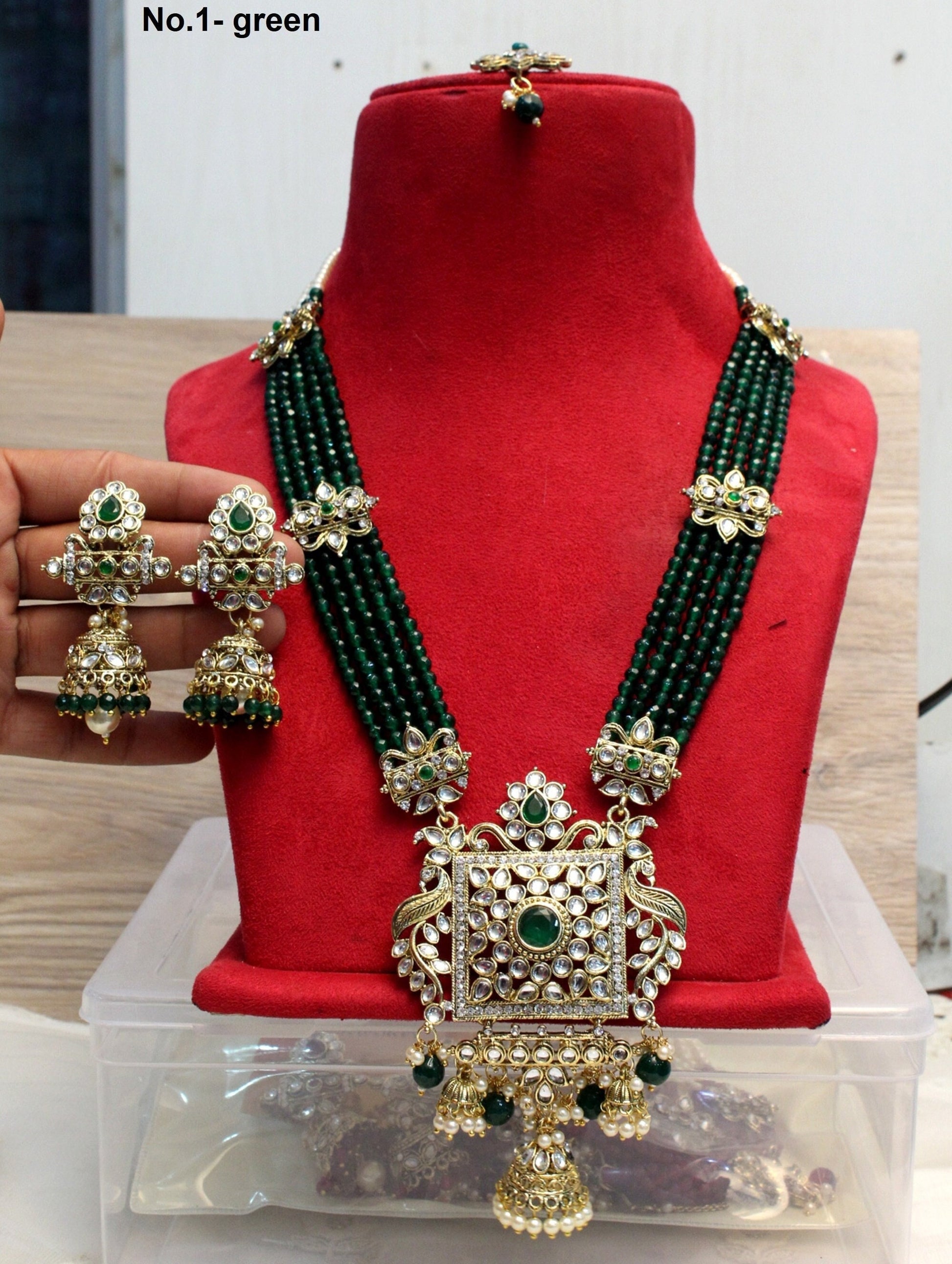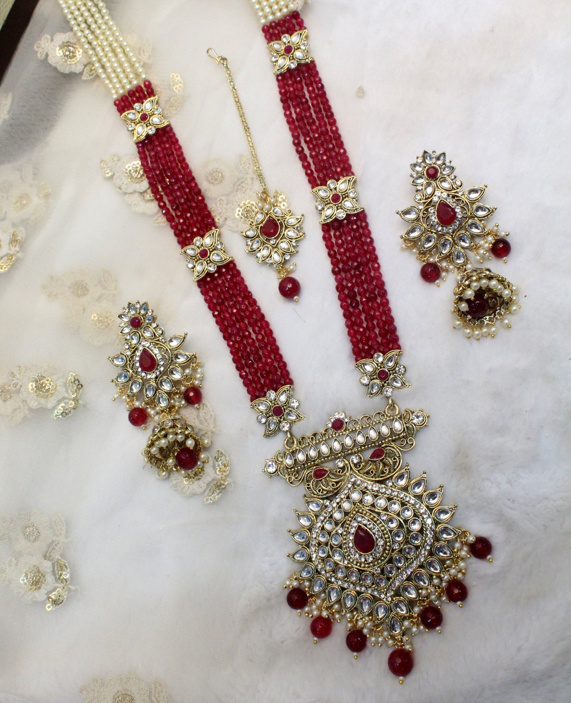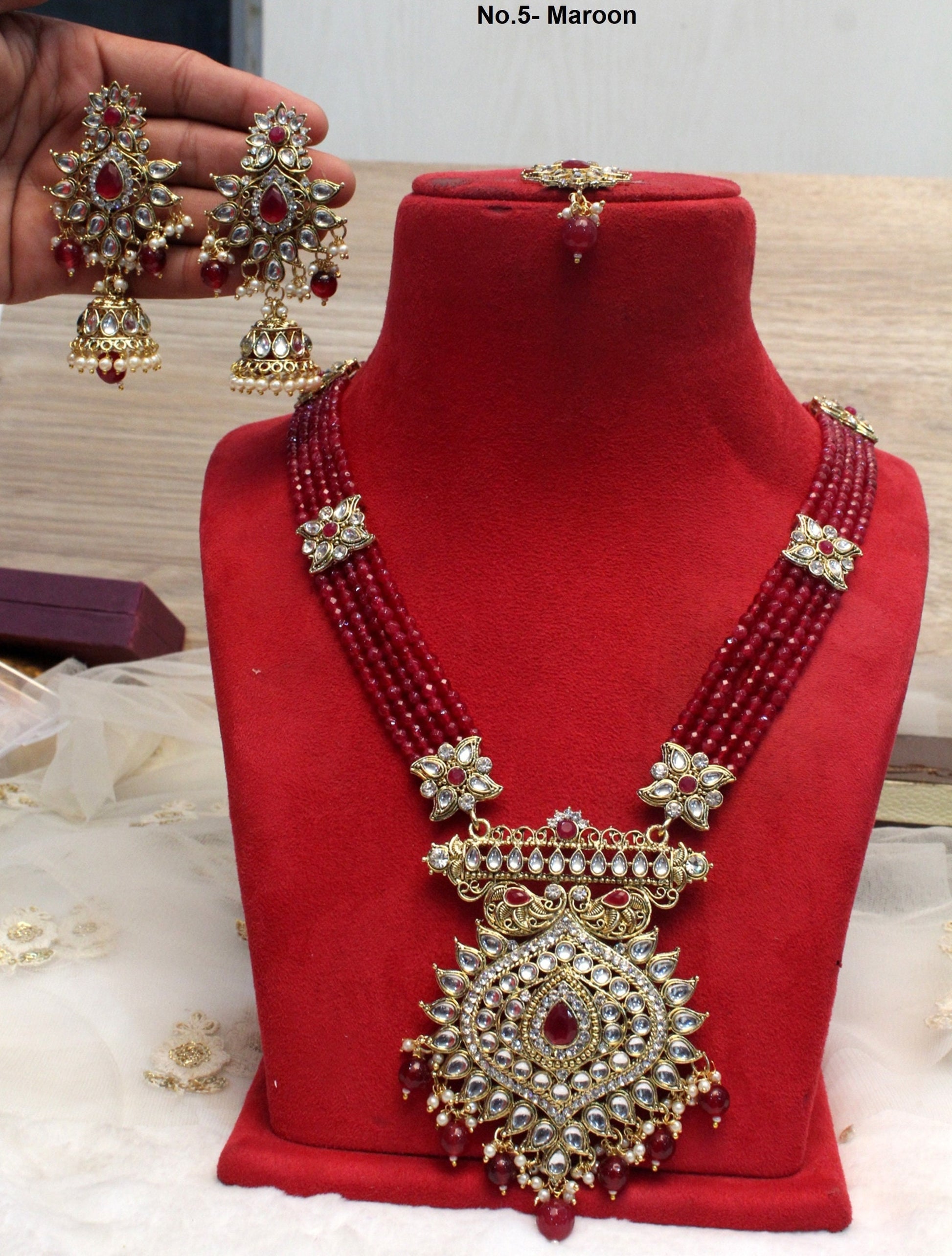 Rani Haar Kundan long Necklace Set/Gold, Maroon ,Green Indian Necklace Set/ Indian kundan Jewellery/Muslim Long Necklace Set