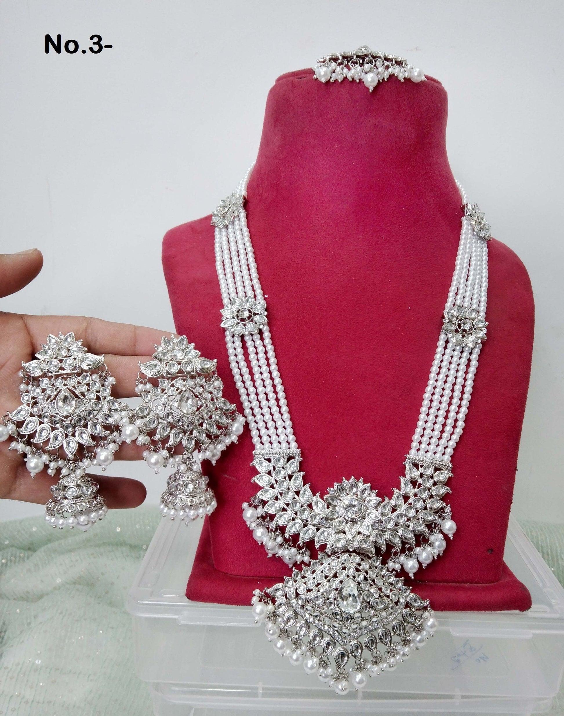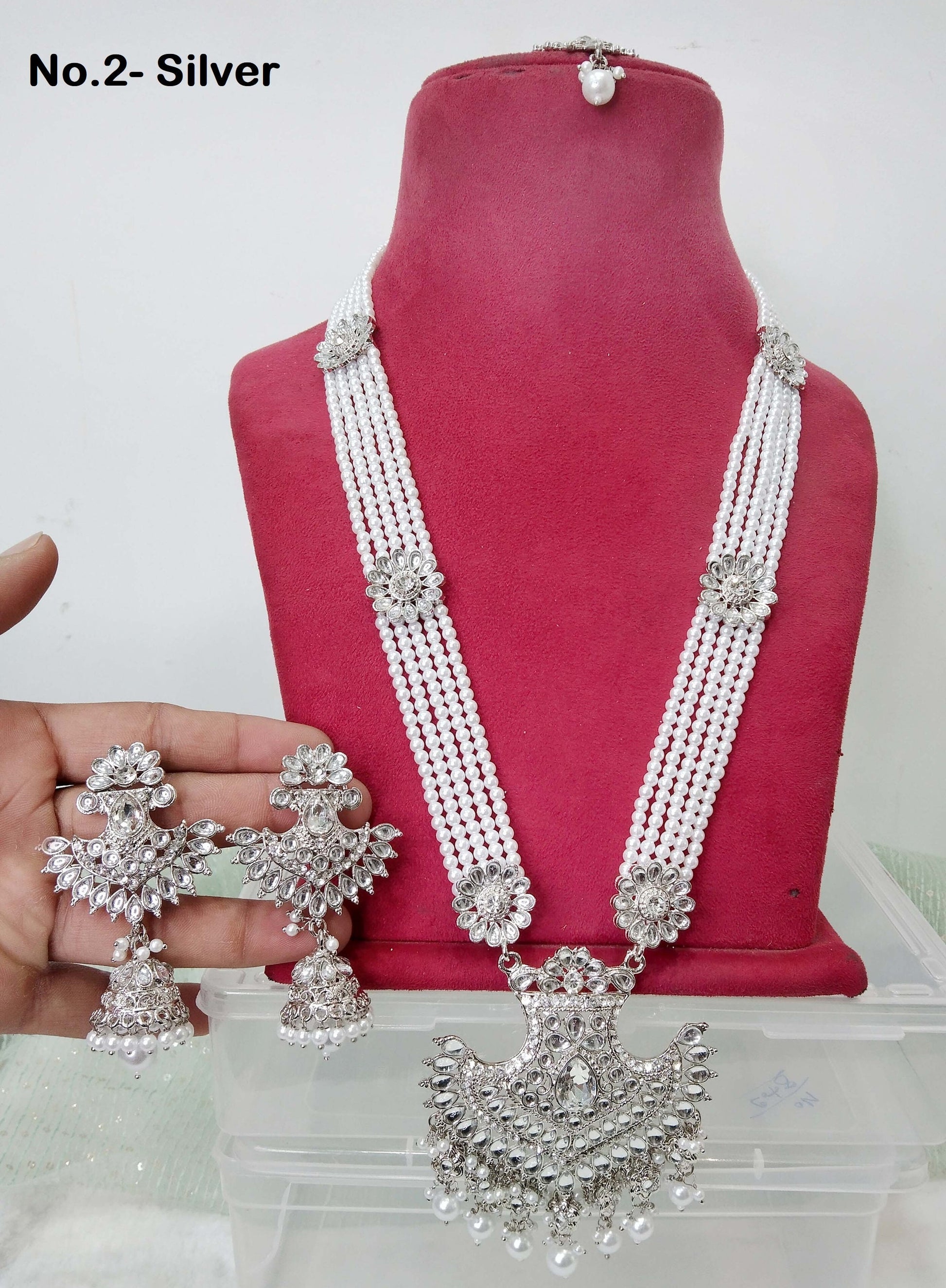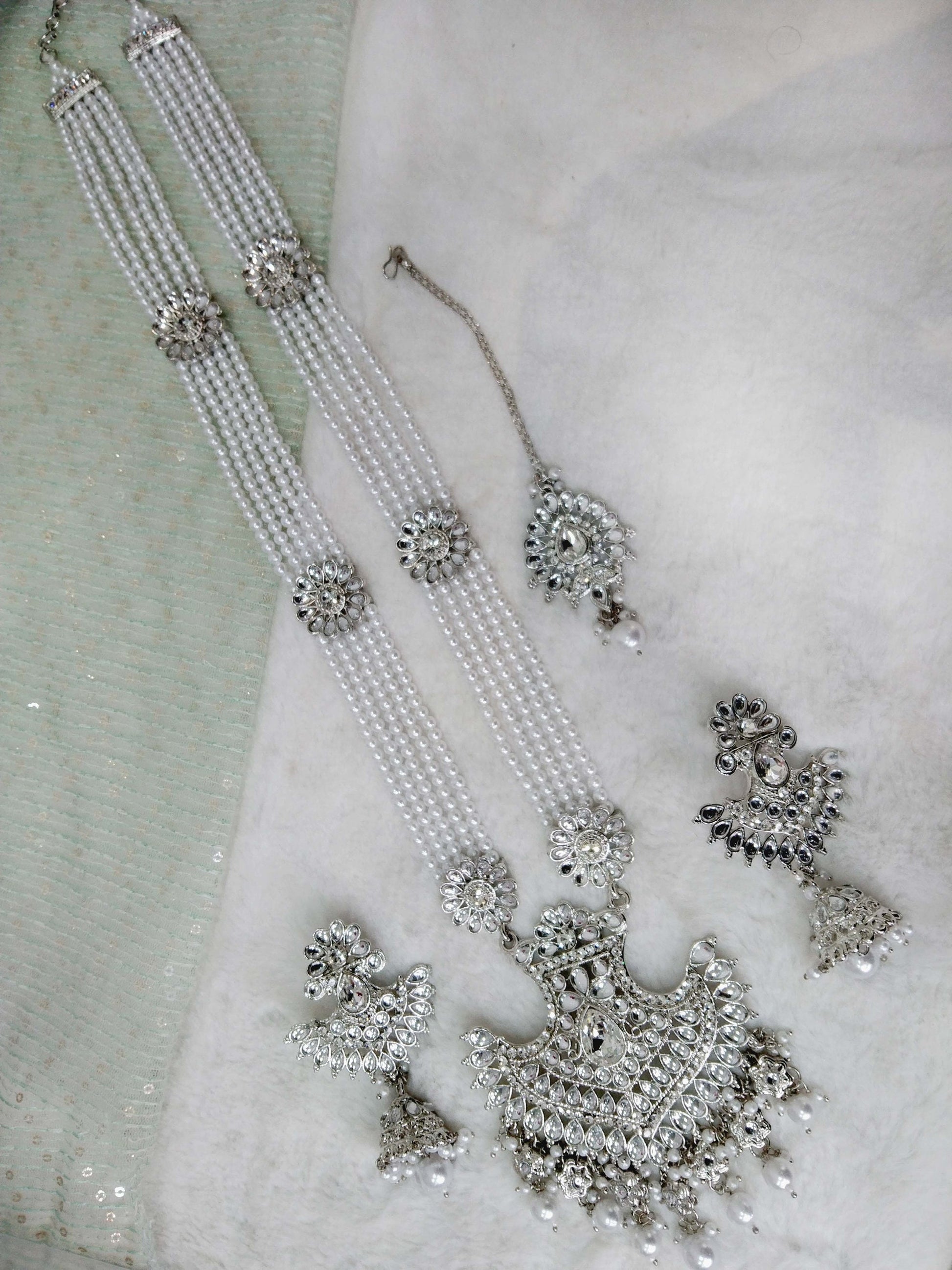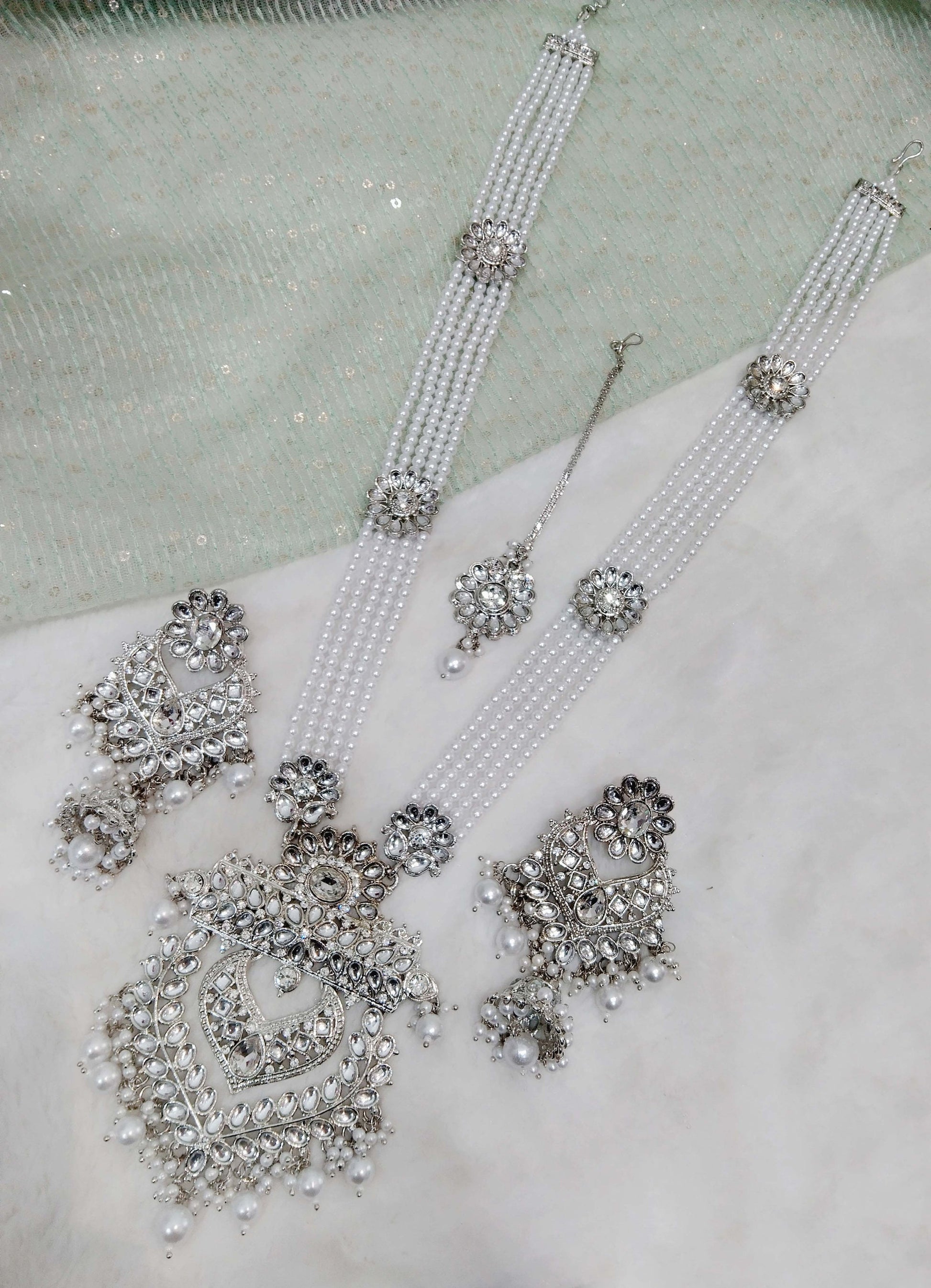 Rani Haar Kundan long Necklace Set/Silver Indian Necklace Set/ Indian kundan Jewellery/Muslim Long Necklace Set