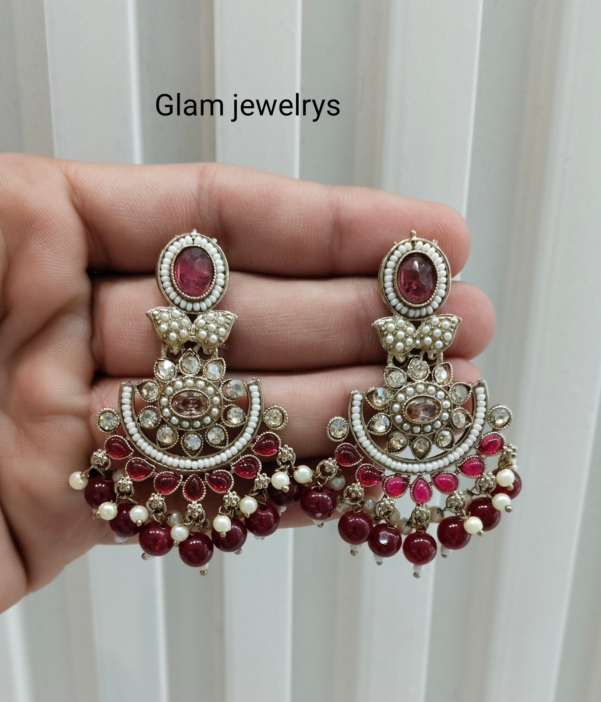 Ruby Antique Gold Bollywood Maan Indian Earrings