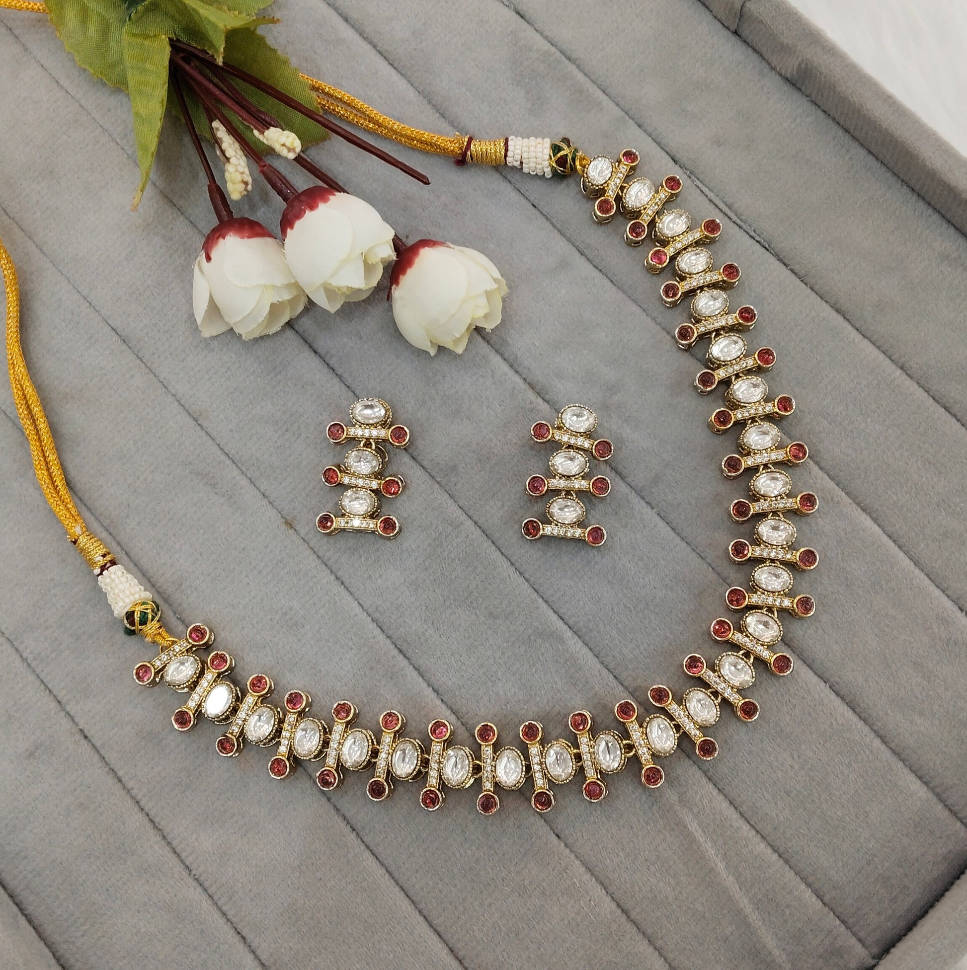 Ruby Gold Moissanite Kundan Necklace Indian Jewellery Massy Set