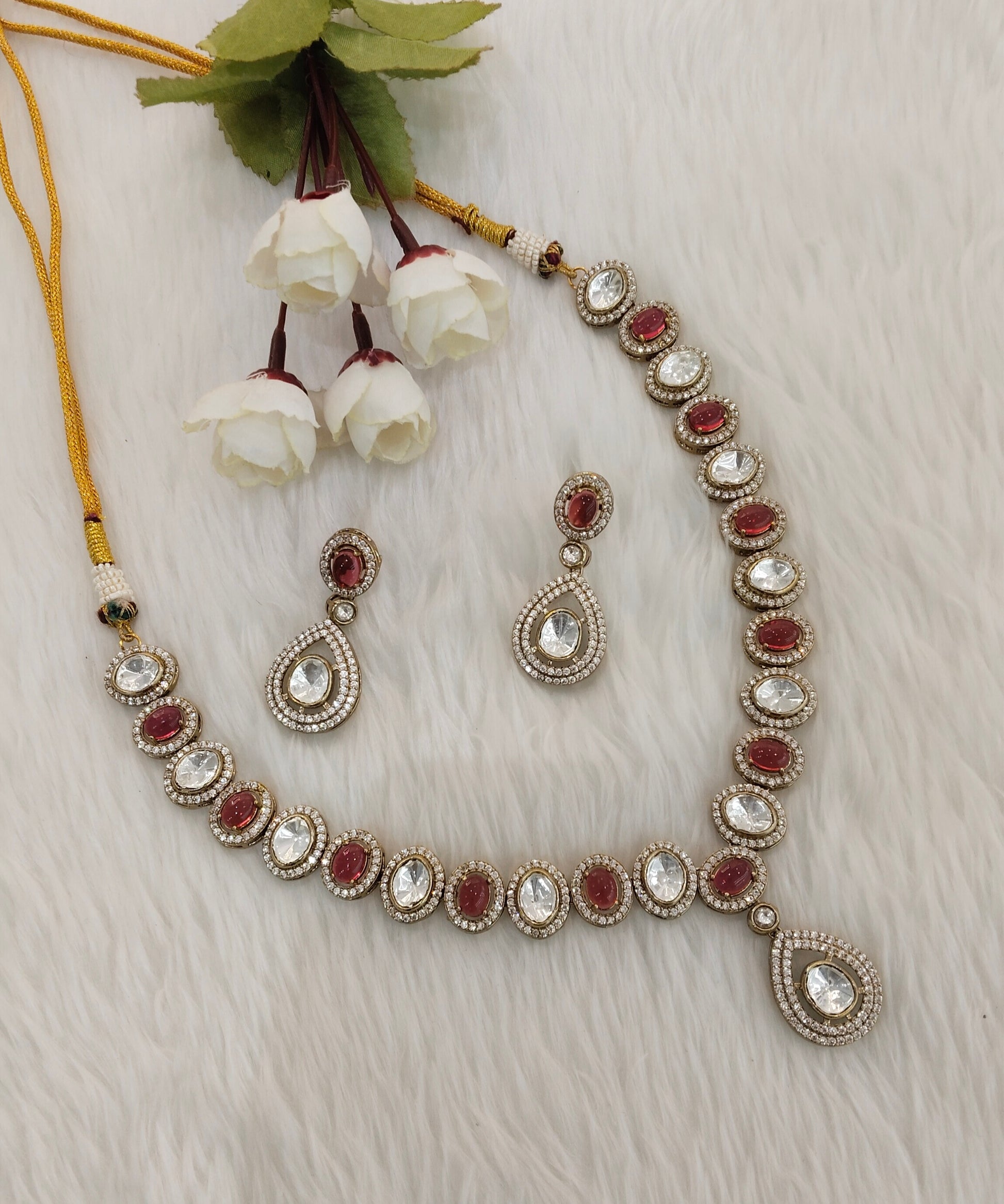 Ruby Gold Moissanite Kundan Necklace Indian Jewellery Sonalika Set