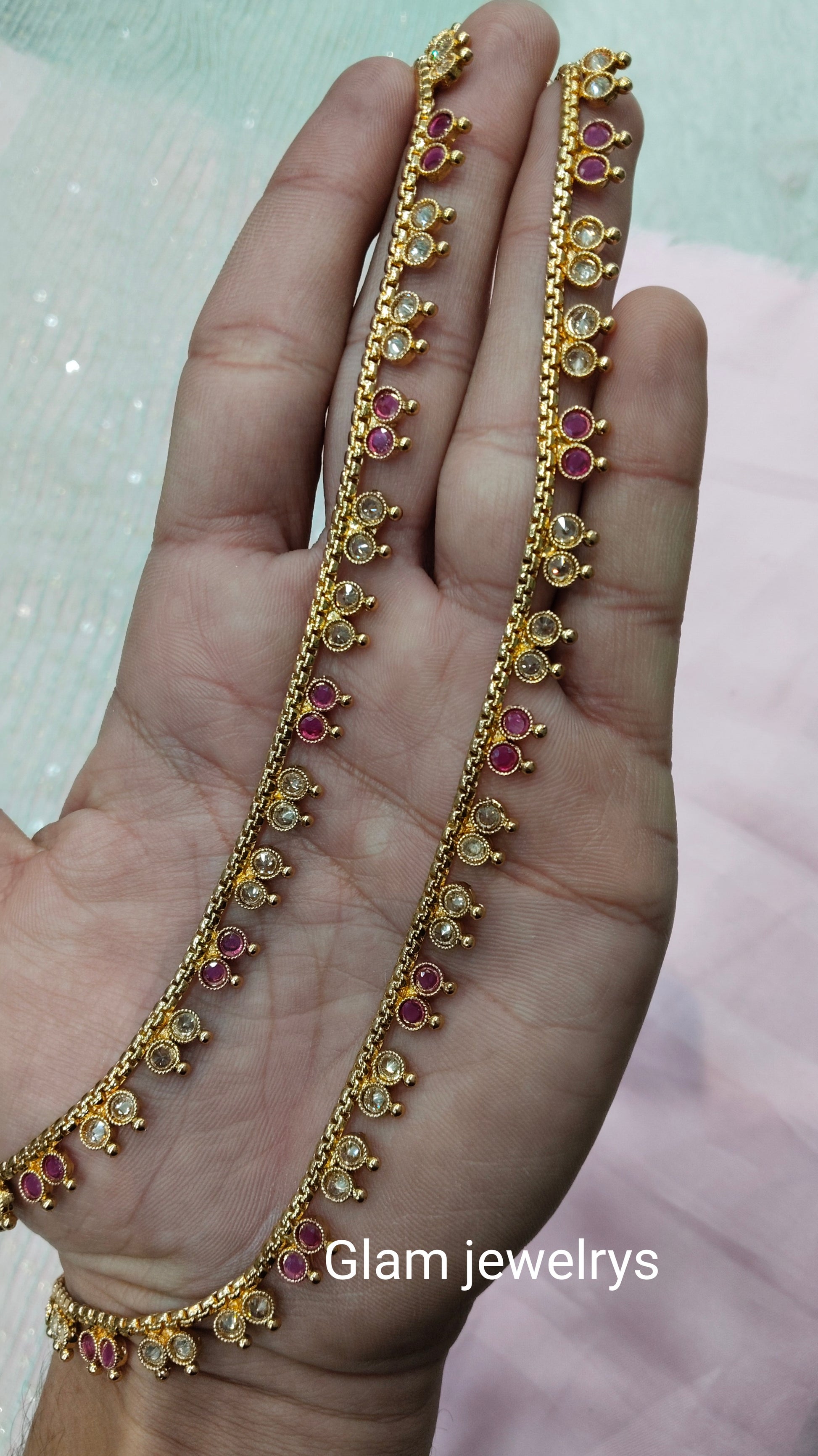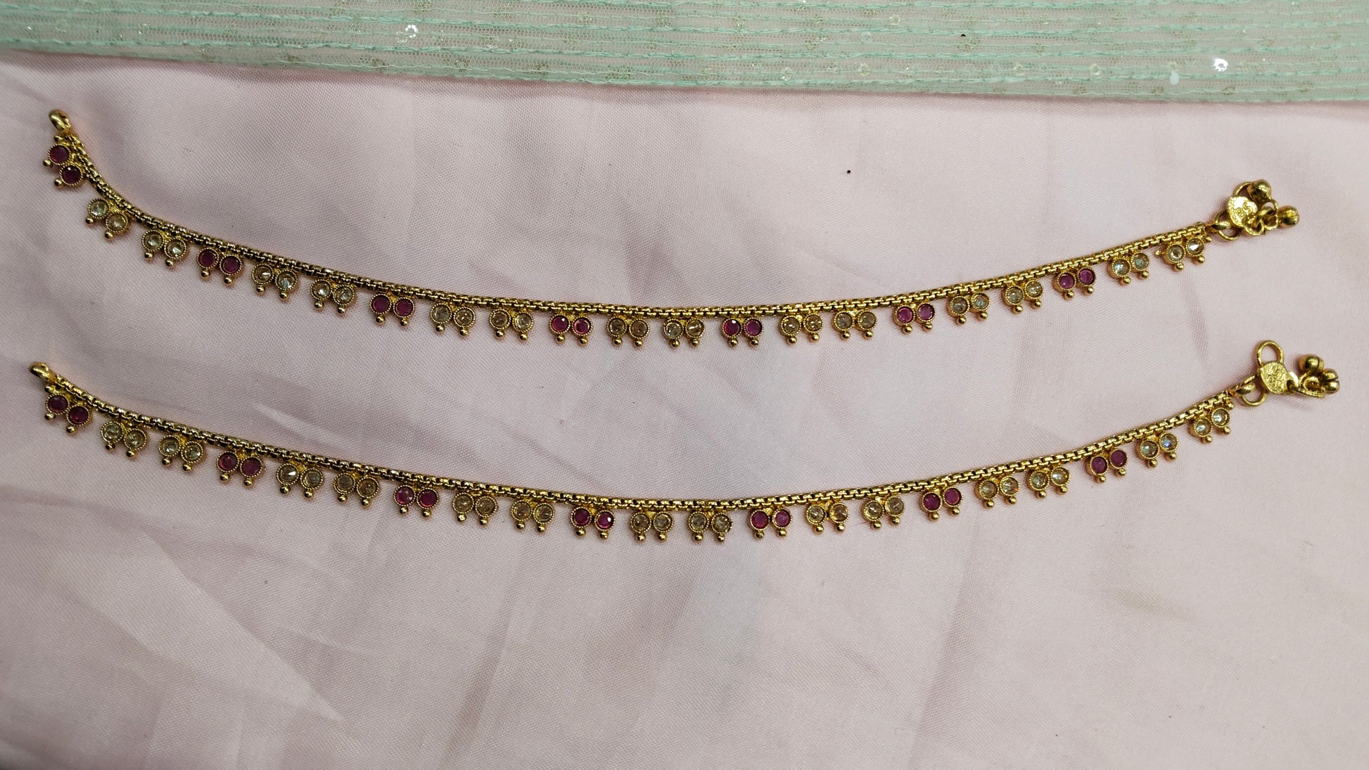 Ruby Gold Polki Anklets Jhanjar Payal Indian Jewellery Prince Set