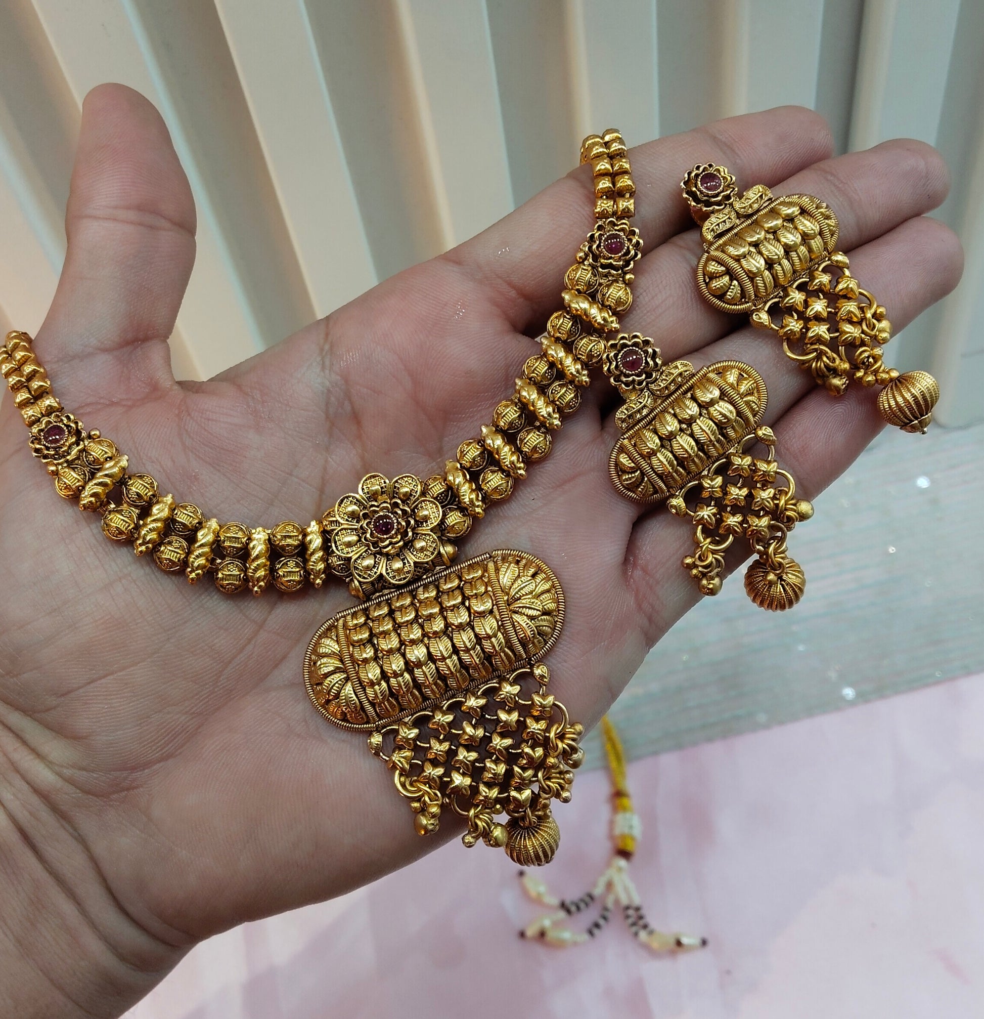 Ruby Gold Polki Necklace Indian Jewellery Harf Set
