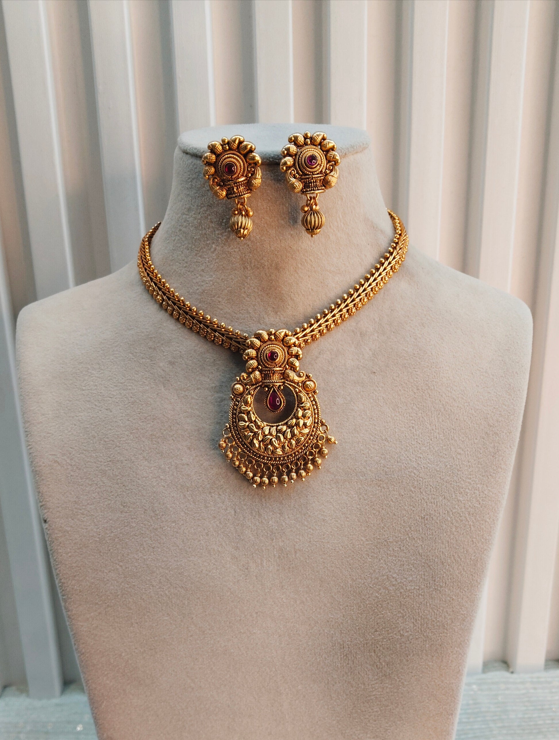 Ruby Gold Polki Necklace Indian Jewellery Harf Set