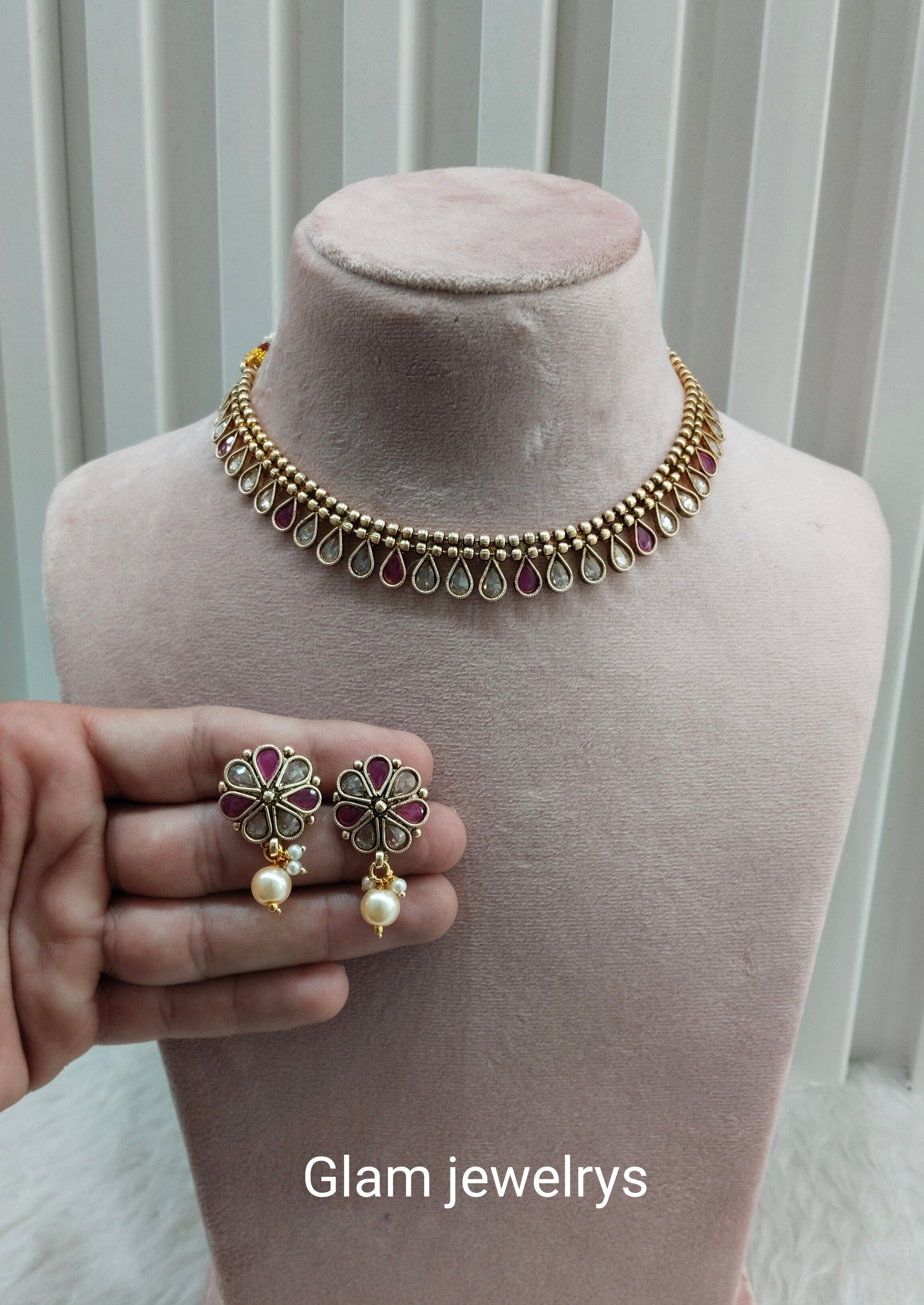 * Gold Finish Polki Necklace Set with earrings as shown in the pic.