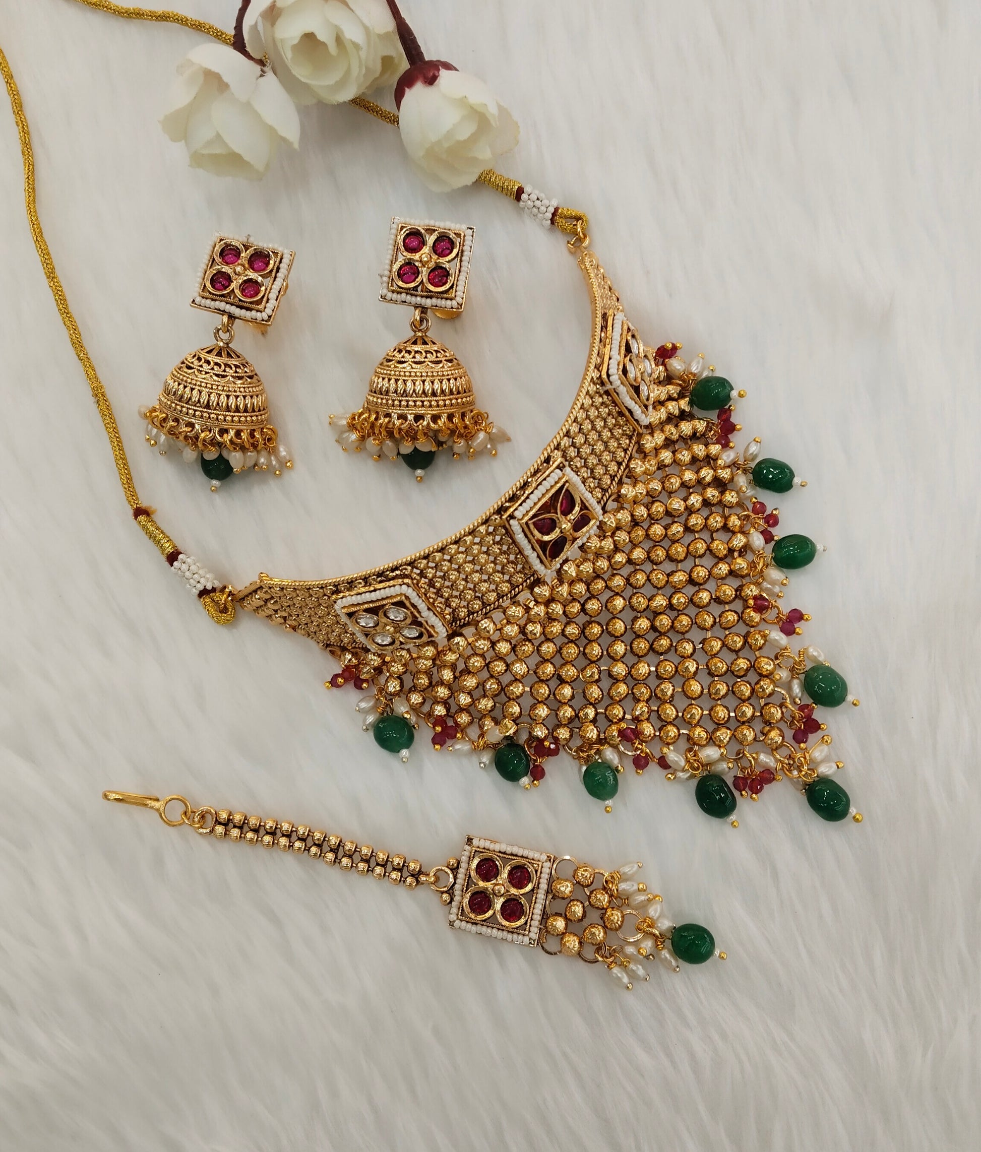 Ruby Green Gold Polki Choker Indian Jewellery Kishu Set