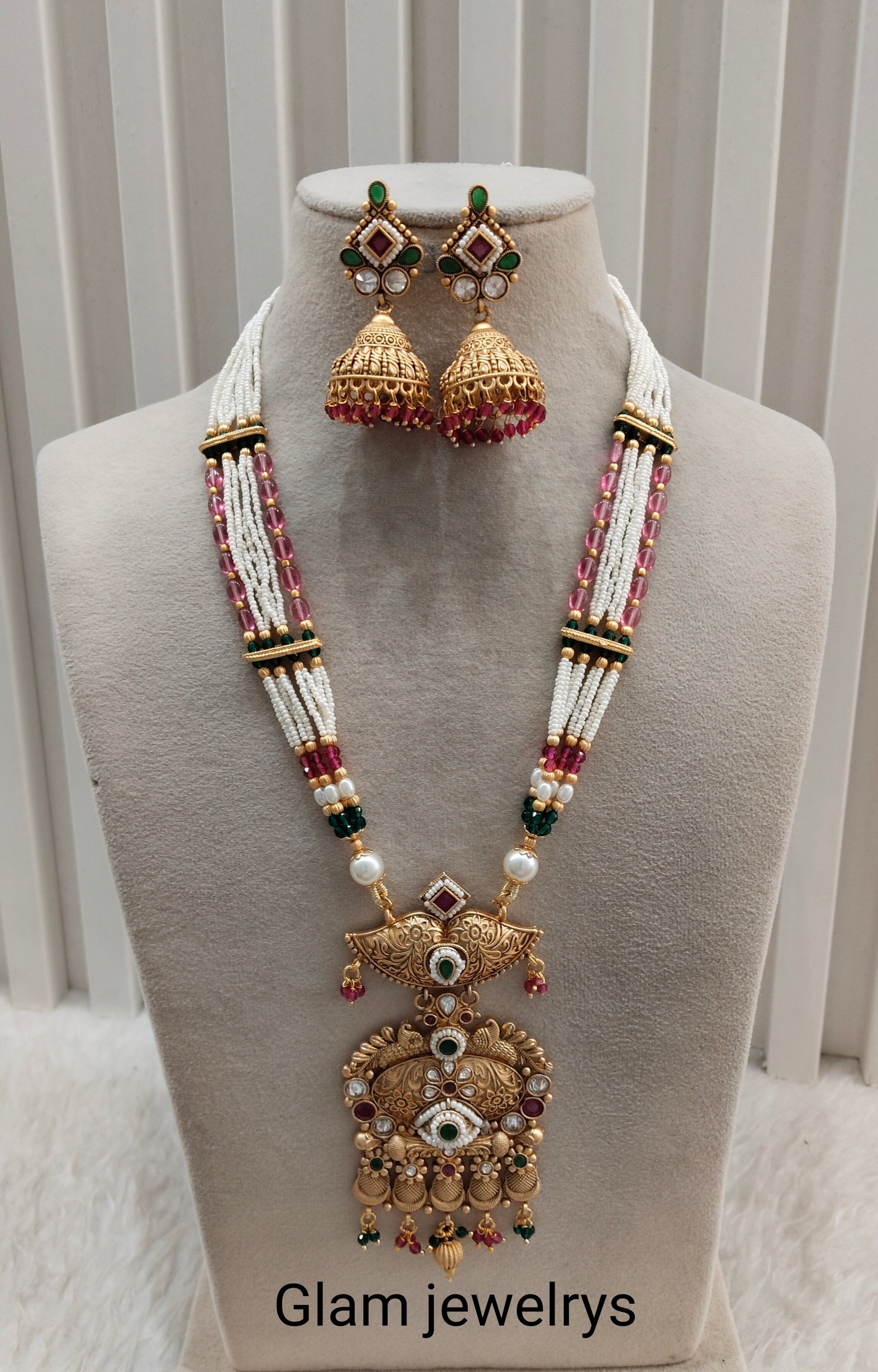 Ruby Green Gold Polki Long Rani Haar Necklace Indian Jewellery Inder Set