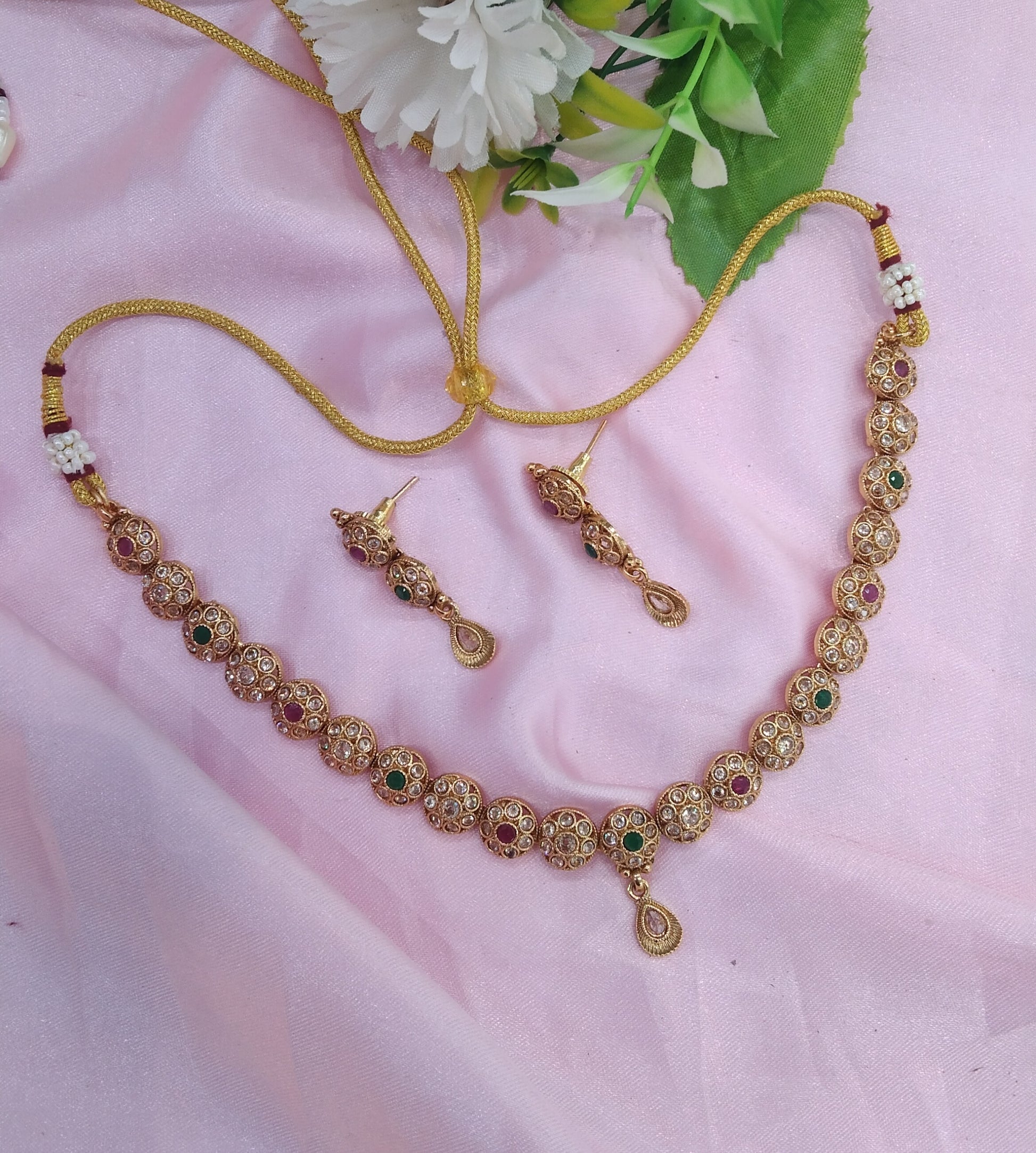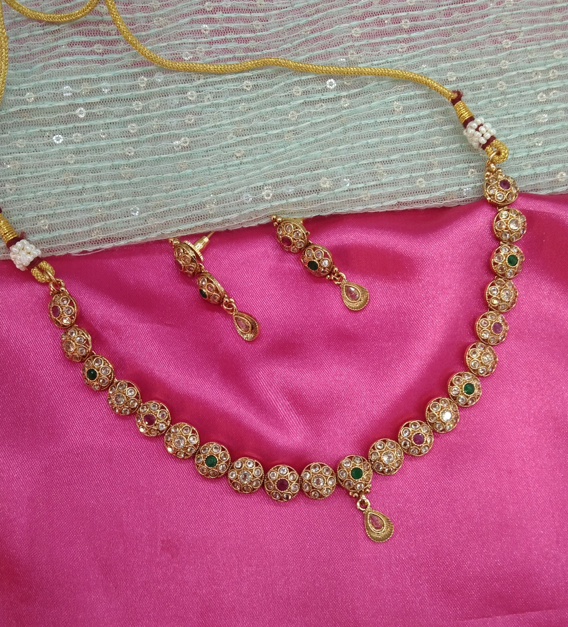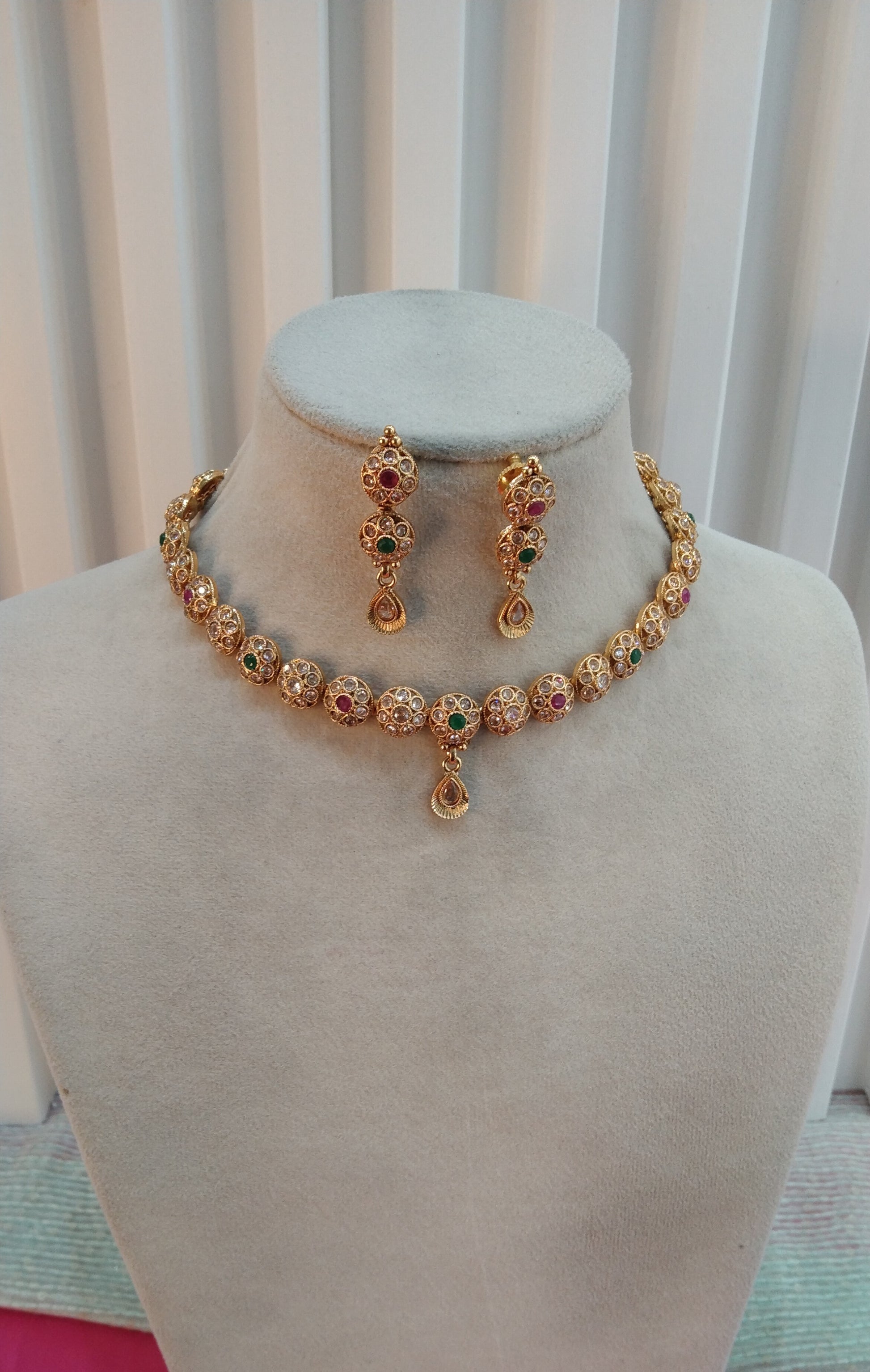 Ruby Green Gold Polki Necklace Indian Jewellery Delta Set