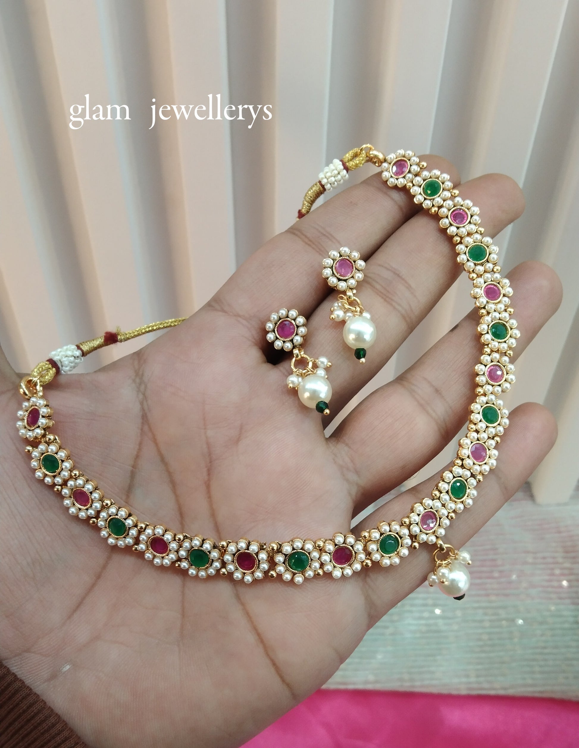 Indian Jewellery Pink Kundan Choker Set/ kundan choker hello Set