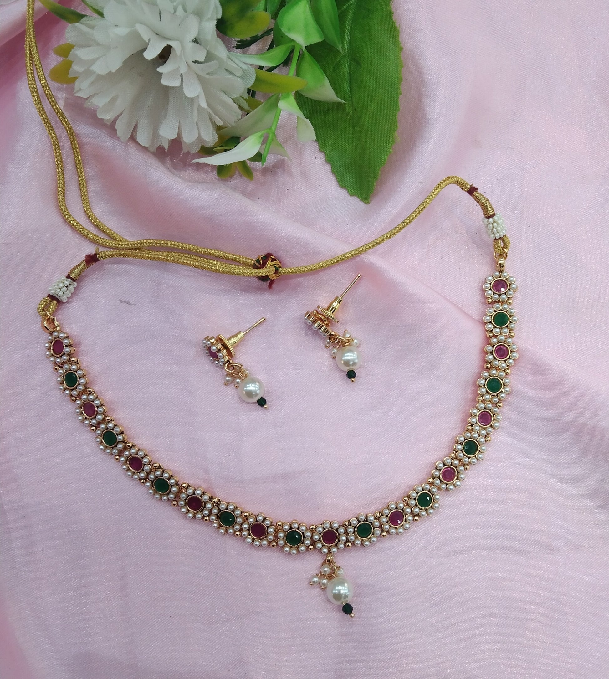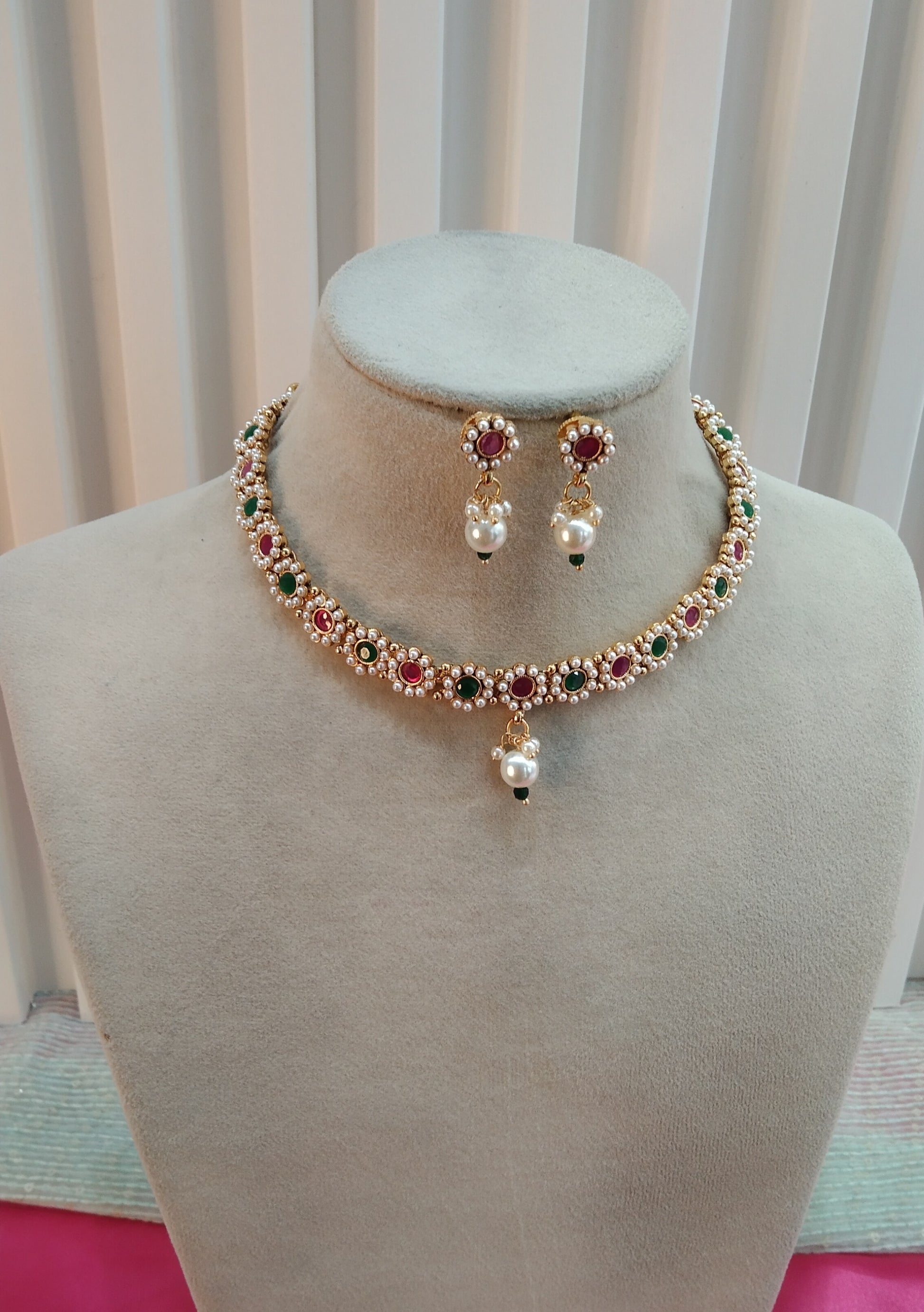 Ruby Green Gold Polki Necklace Indian Jewellery Delta Set