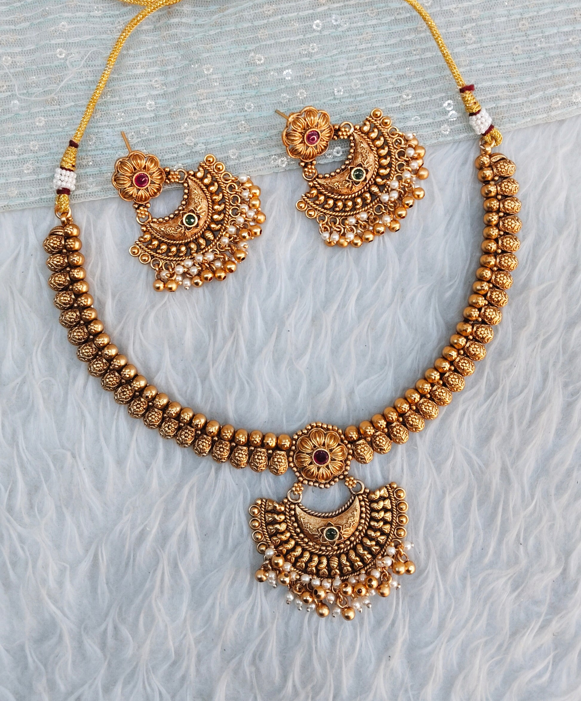 Ruby Green Gold Polki Necklace Indian Jewellery Harf Set