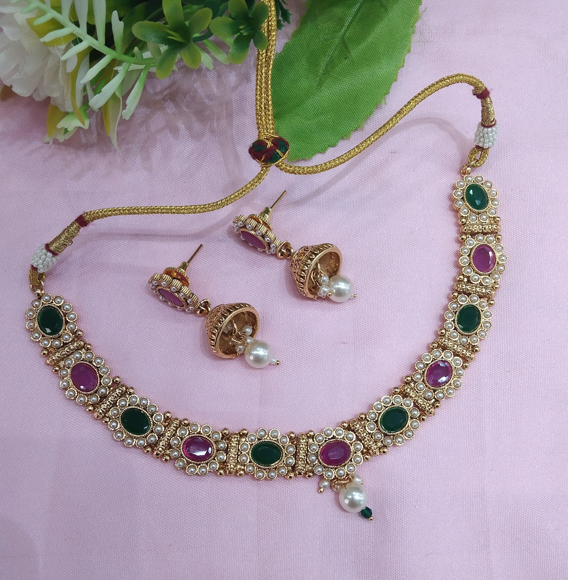 Ruby Green Gold Polki Necklace Indian Jewellery Monika Set
