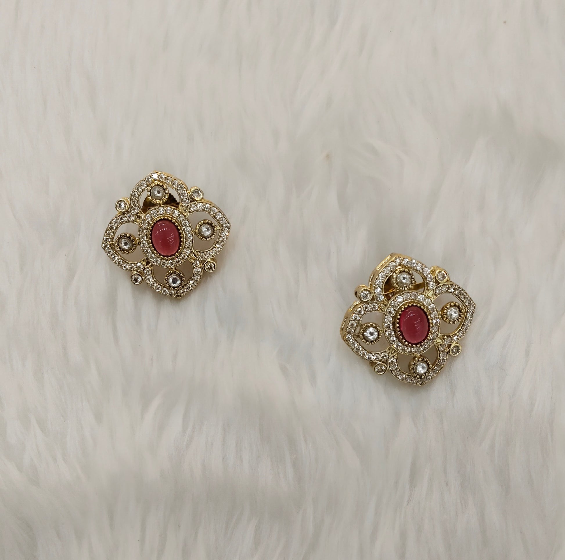 Ruby Moissanite Kundan Bollywood Indian Dhillon Earrings