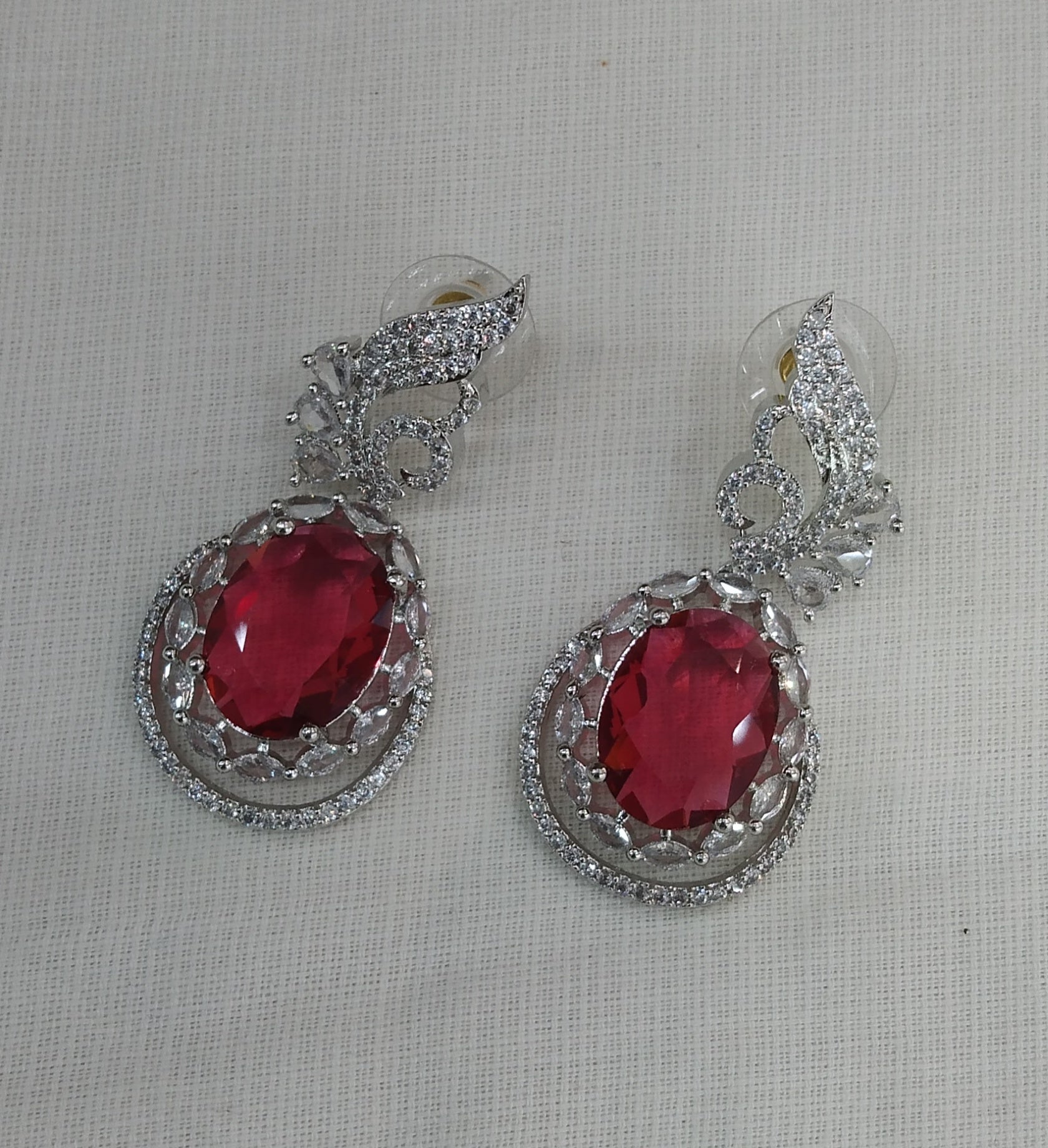 Ruby Silver Cubic Zirconia Diamond Kiran Earrings