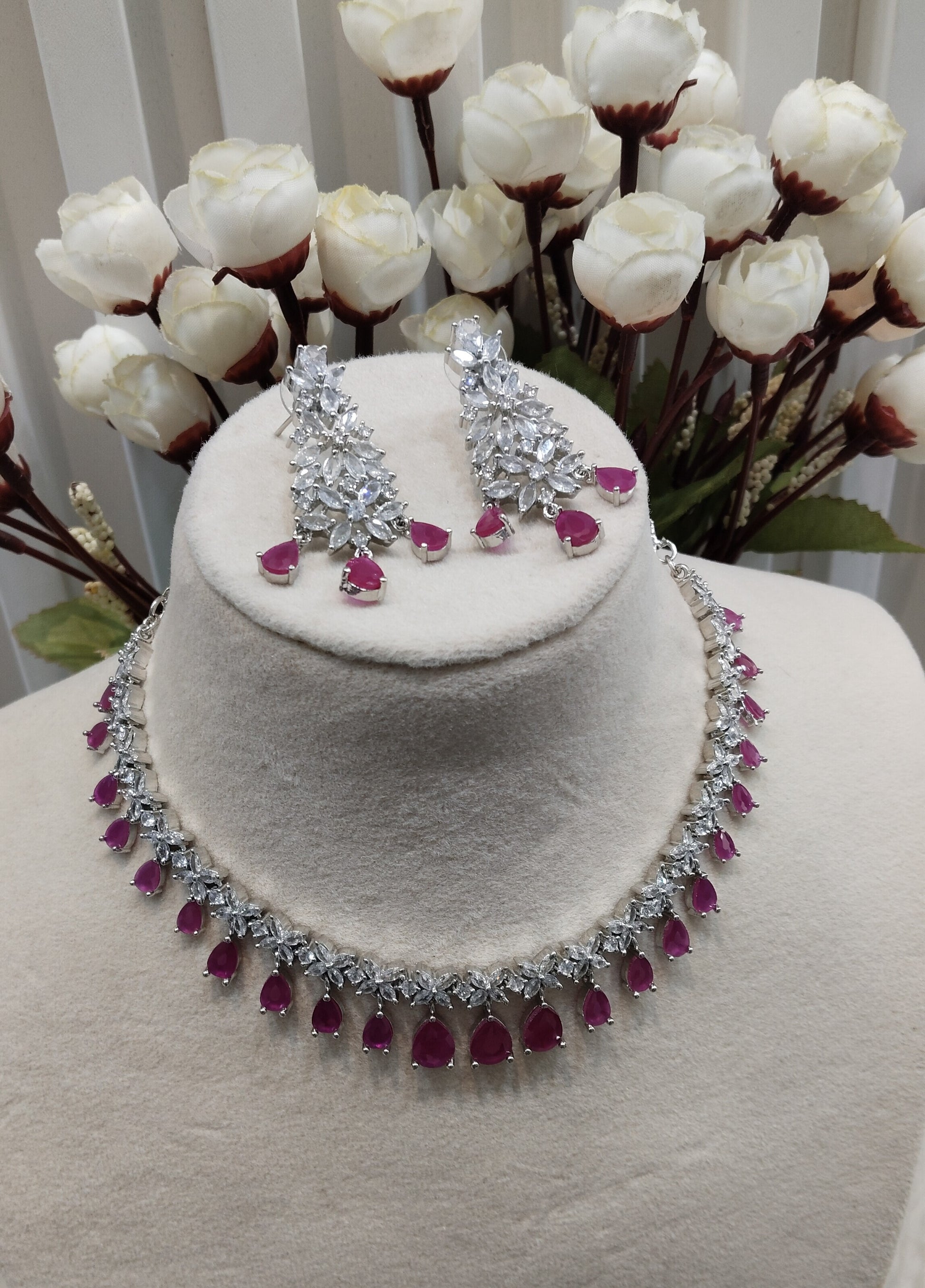 Ruby Silver CZ Necklace Indian Jewellery Marker Set