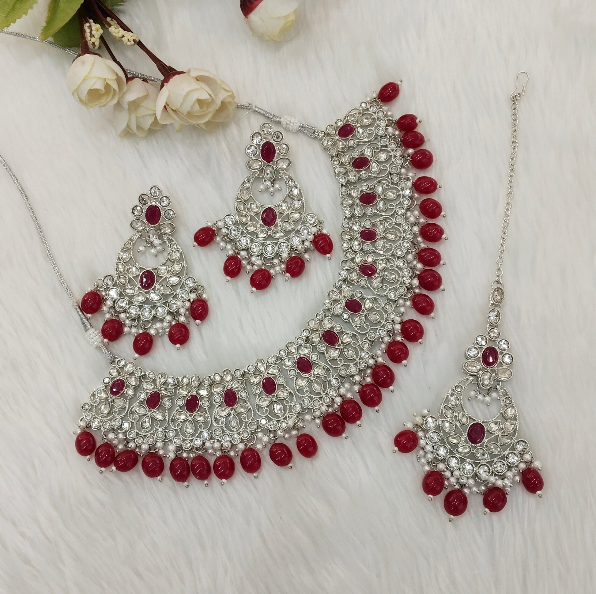Ruby Silver Necklace Indian Bridal Jewellery liva set
