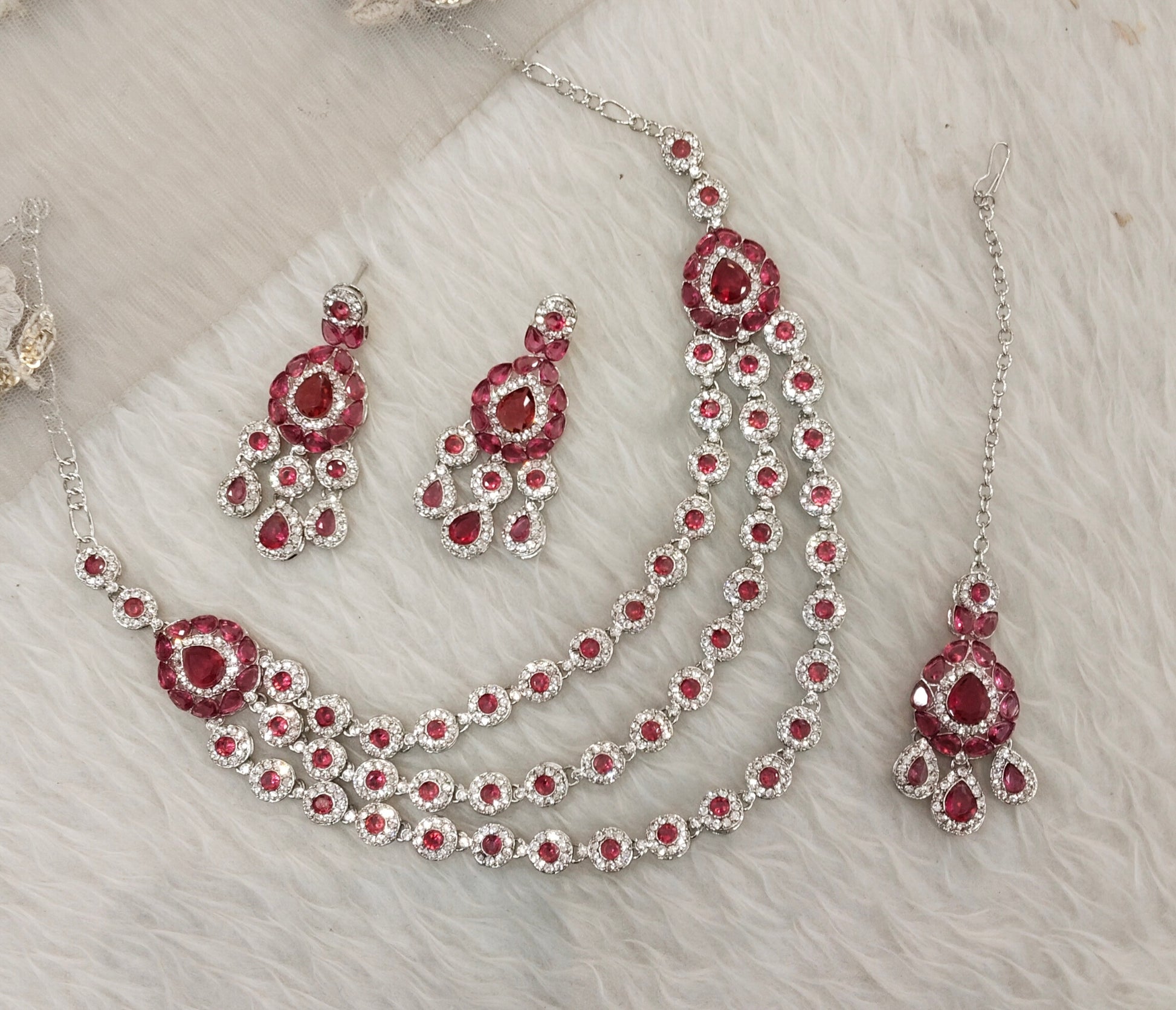 Ruby Silver Zircon Necklace Indian Jewellery Varun Set