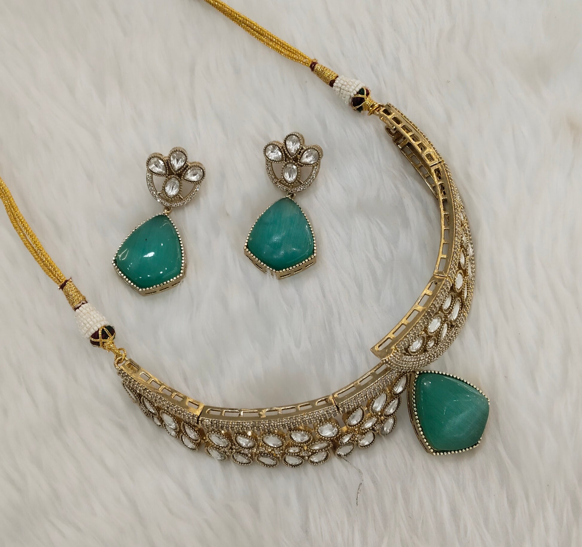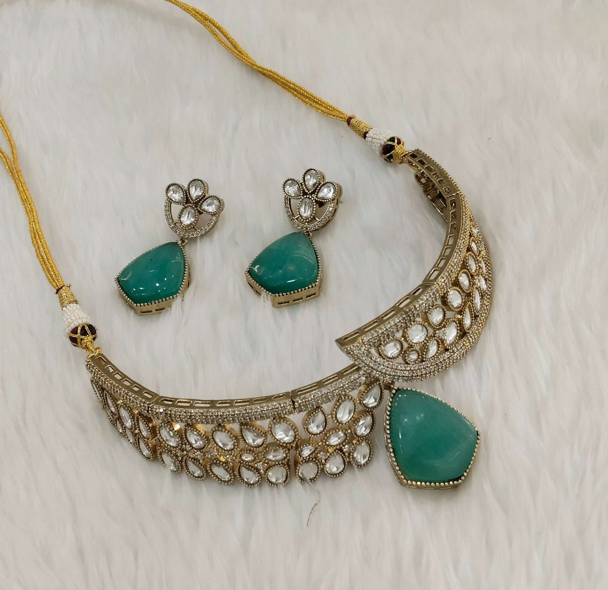 Pastel Green Bridal Necklace Jewellery Kadir Set