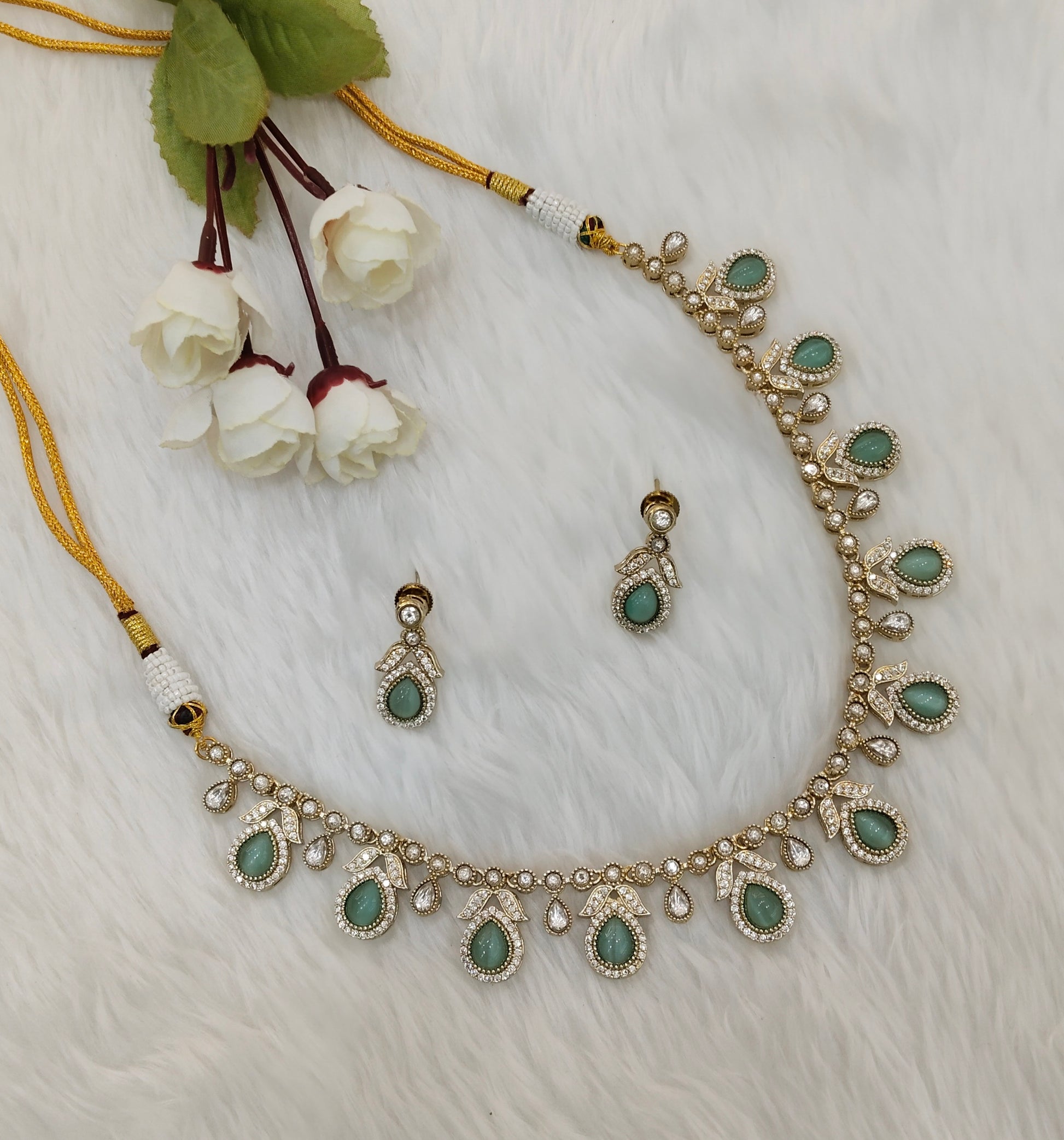 Pastel Green Bridal Necklace Jewellery Kadir Set