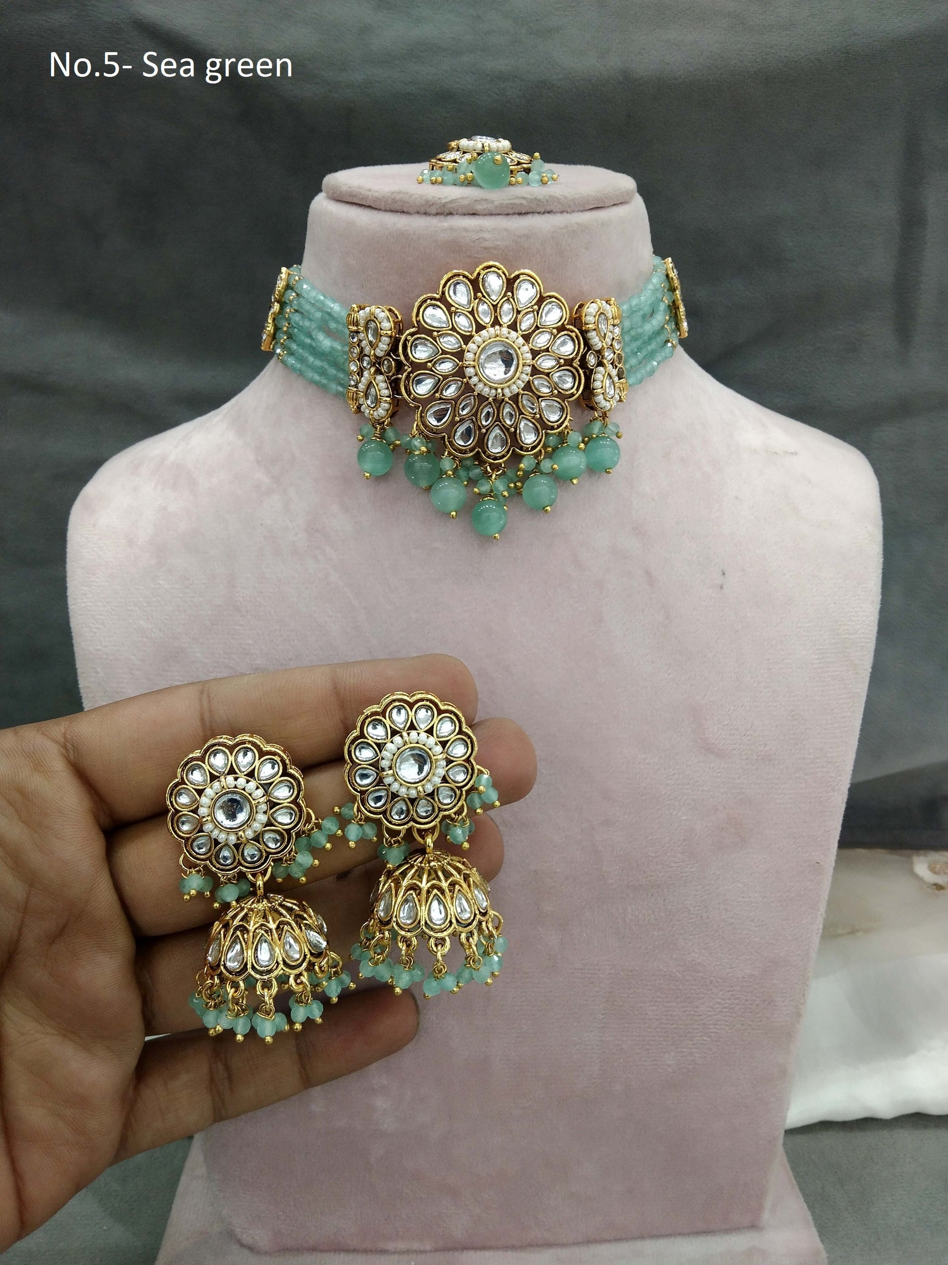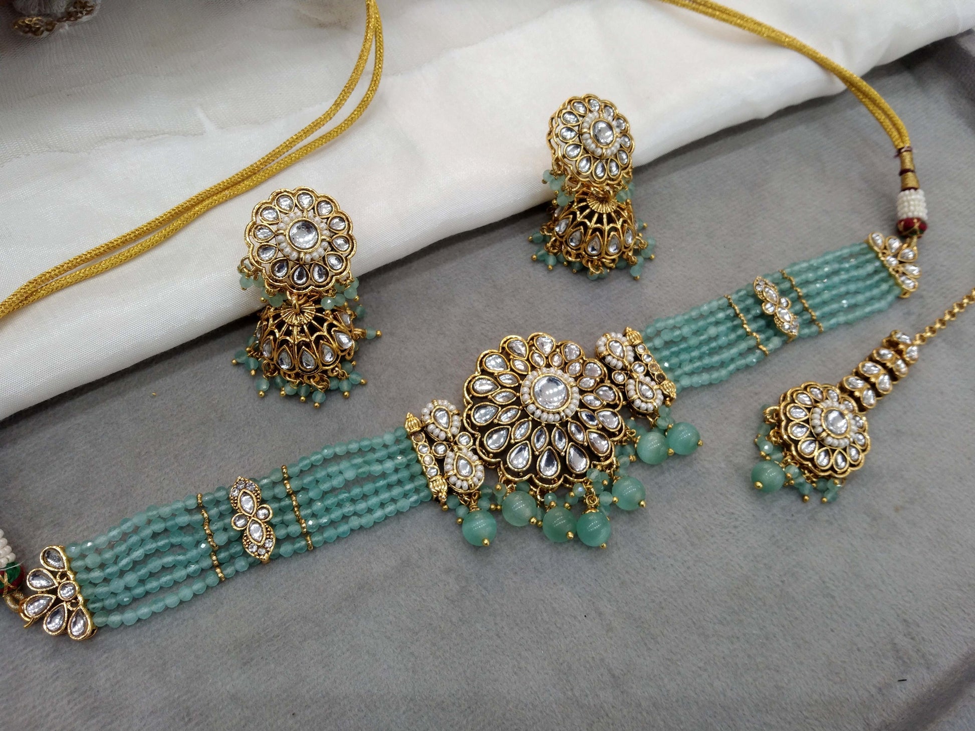 Sea Green Choker Set Indian Jewellery Gold Kundan choker Set/ kundan choker Setin Set