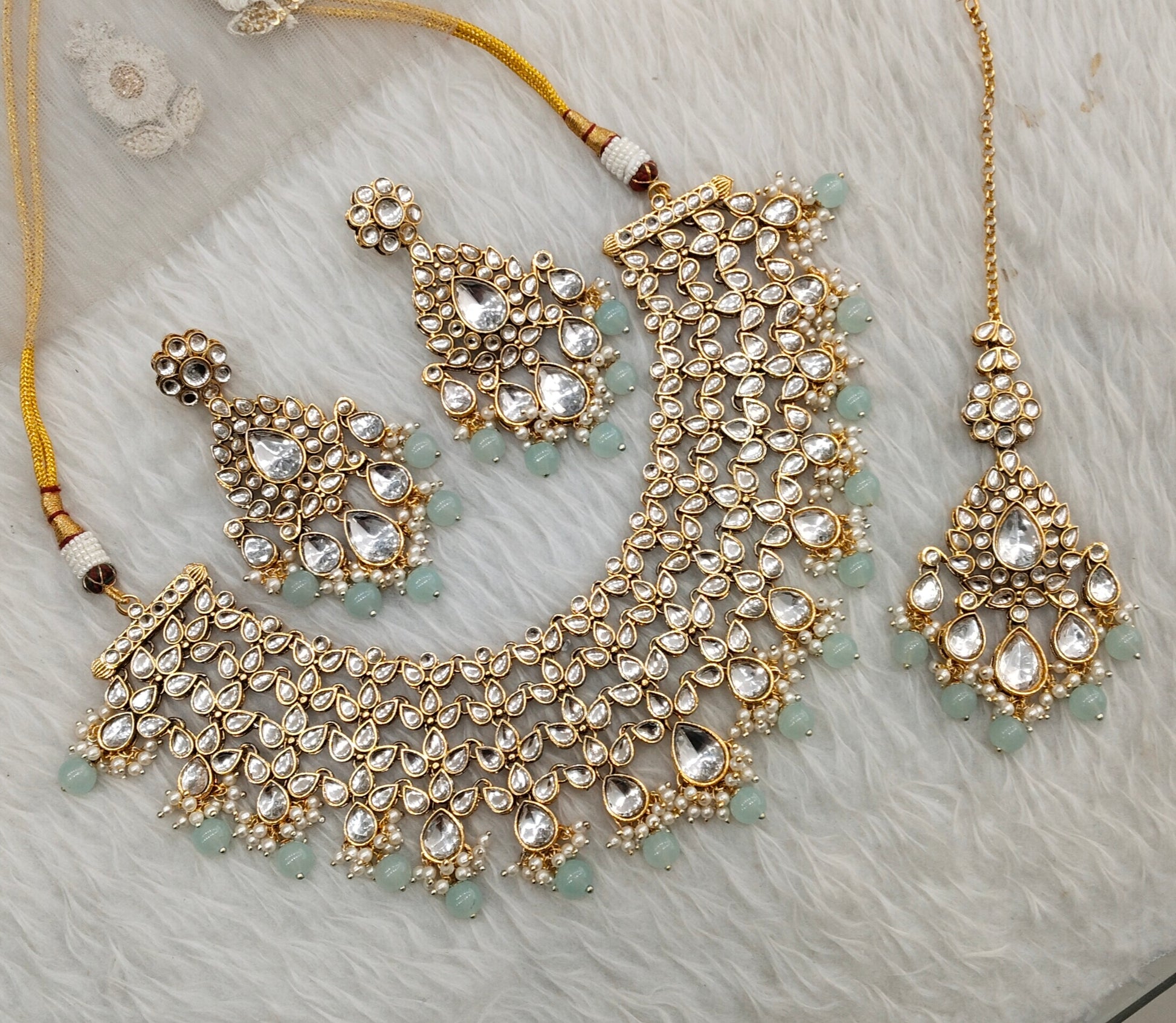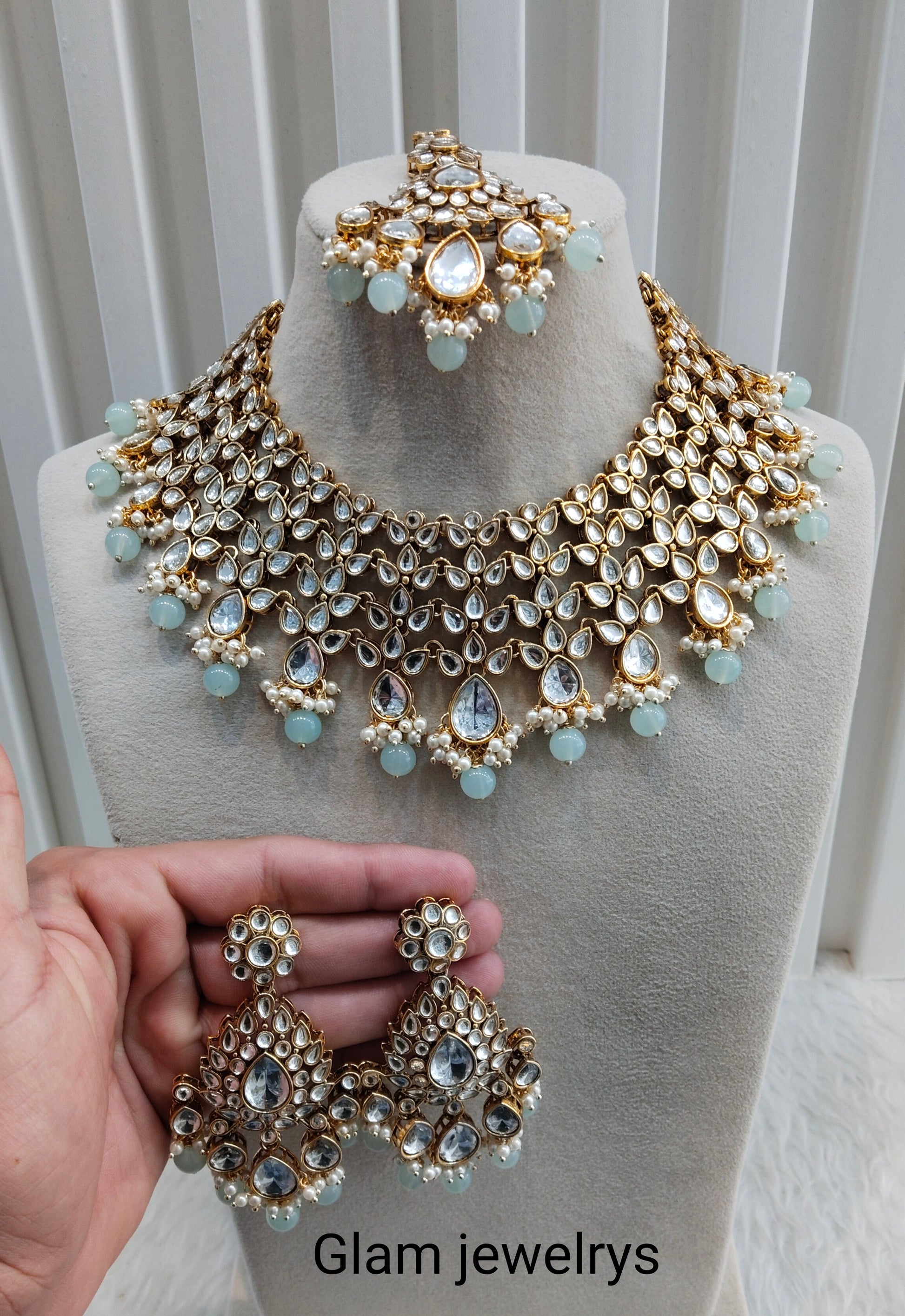 Sea Green Gold Kundan Necklace Indian Jewellery Rishab Set