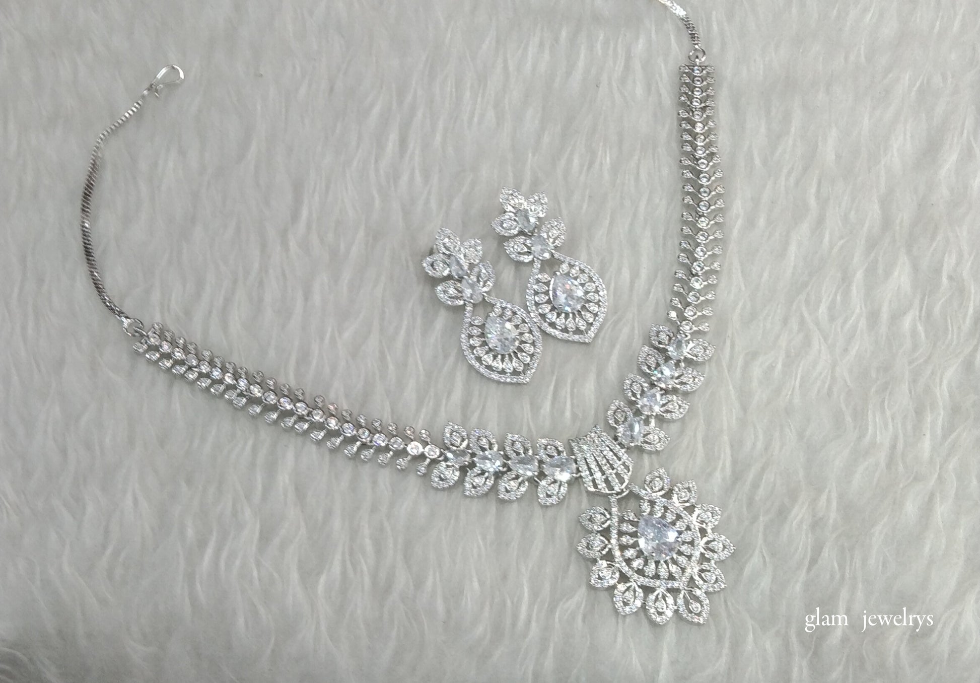 Silver American Diamond AD Karam Necklace Set /Indian Necklace Set