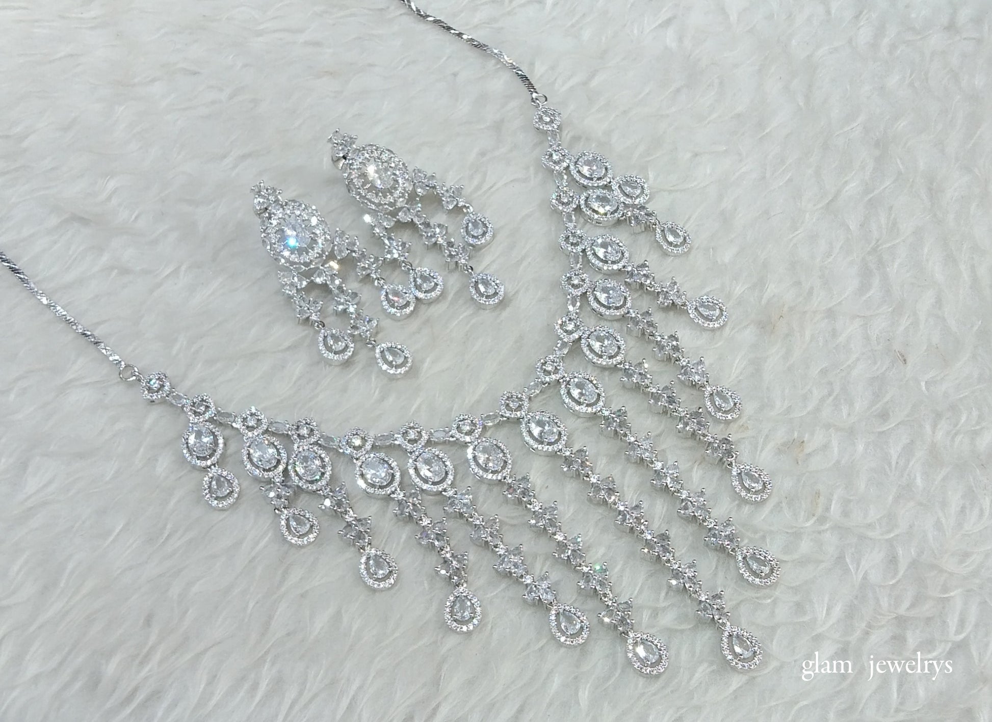 Silver American Diamond AD Luna Necklace Set /Indian Necklace Set