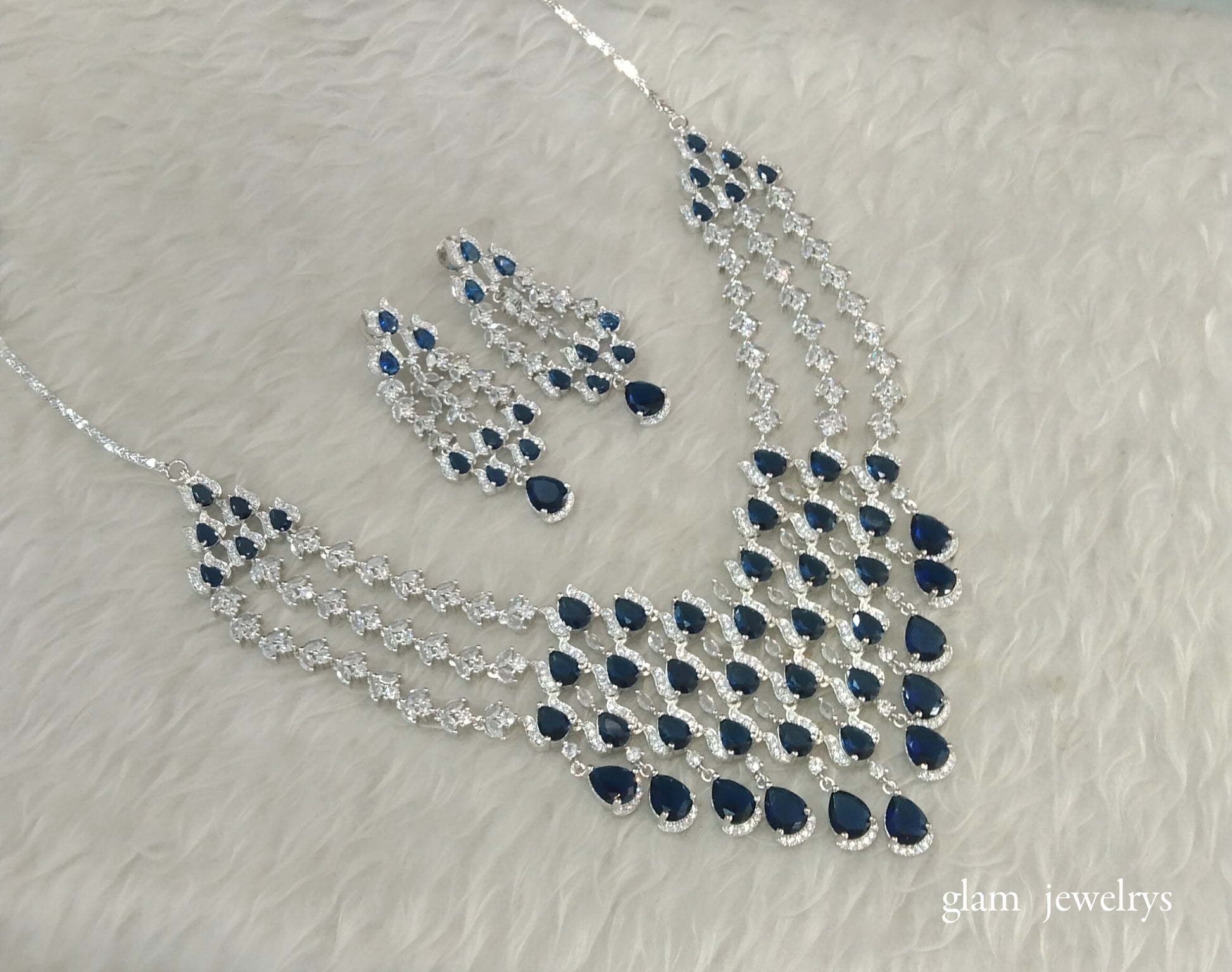 Silver Blue American Diamond AD Julia Necklace Set /Indian Necklace Set